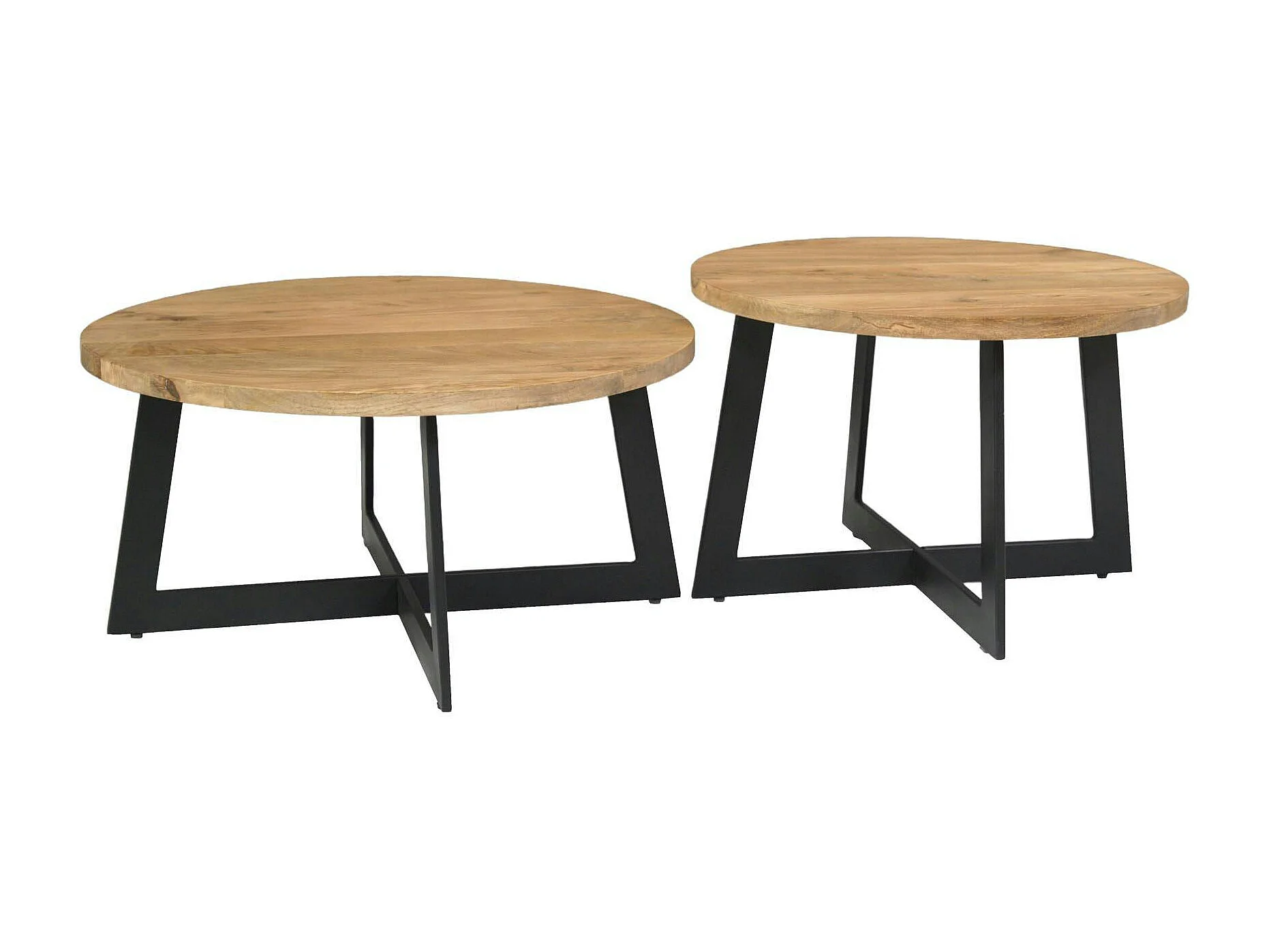 Table basse ronde en bois avec pied en croix (lot de 2) ALMA