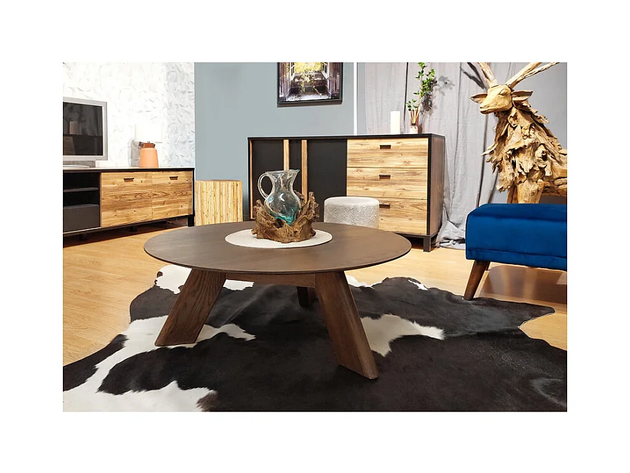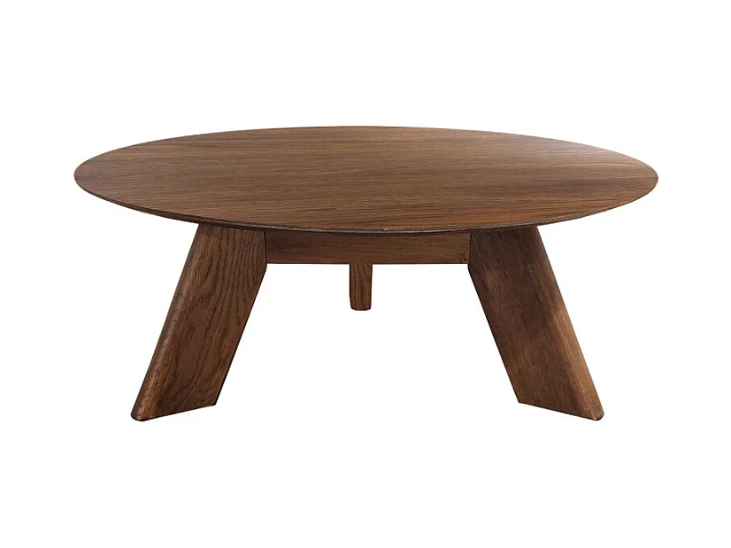 Table basse ronde en bois brun D.90 cm avec 3 pieds inclinés - ZARA