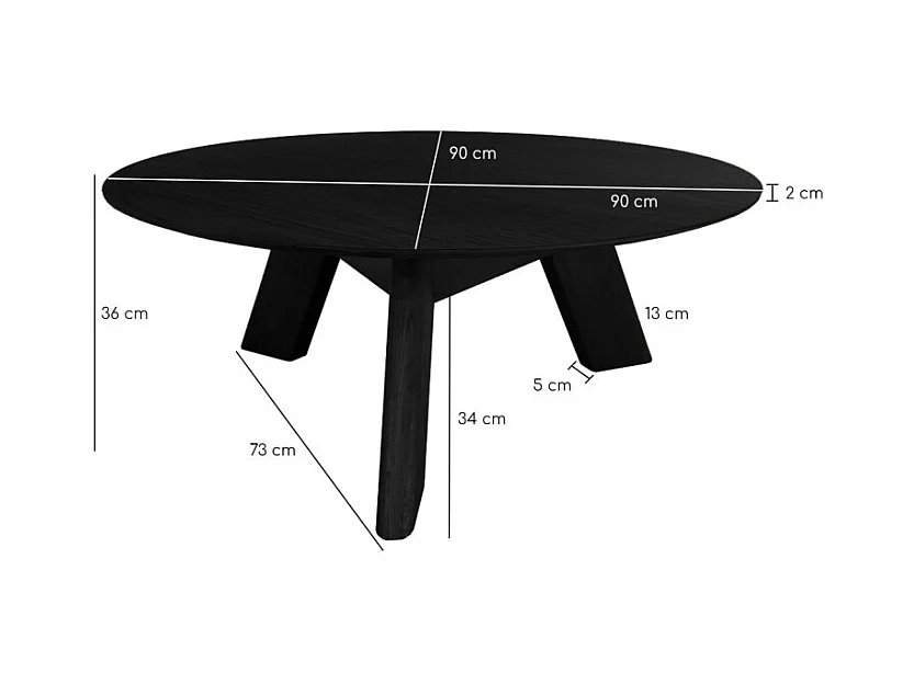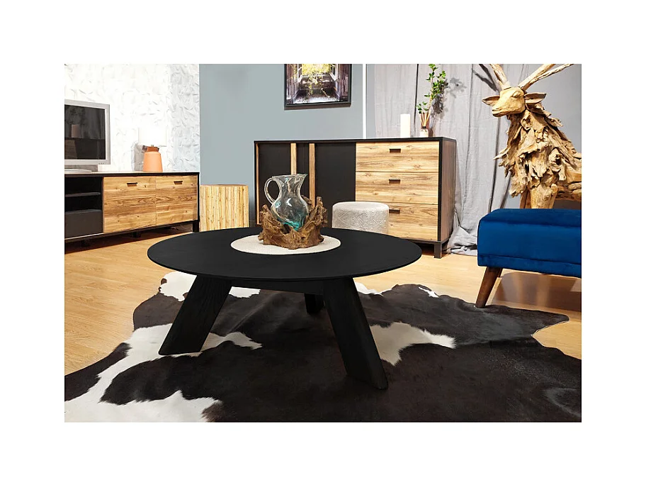 Table basse ronde en bois noir D.90 cm avec 3 pieds inclinés - ZARA