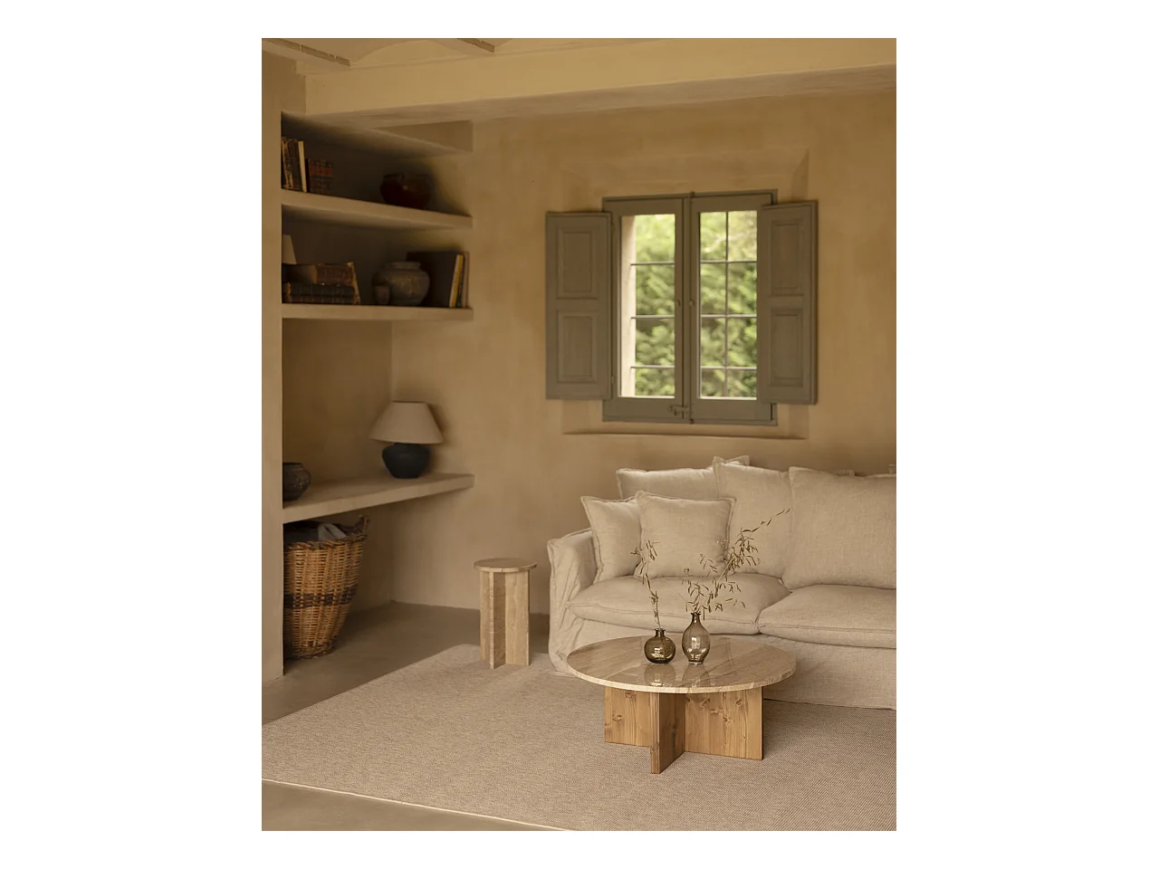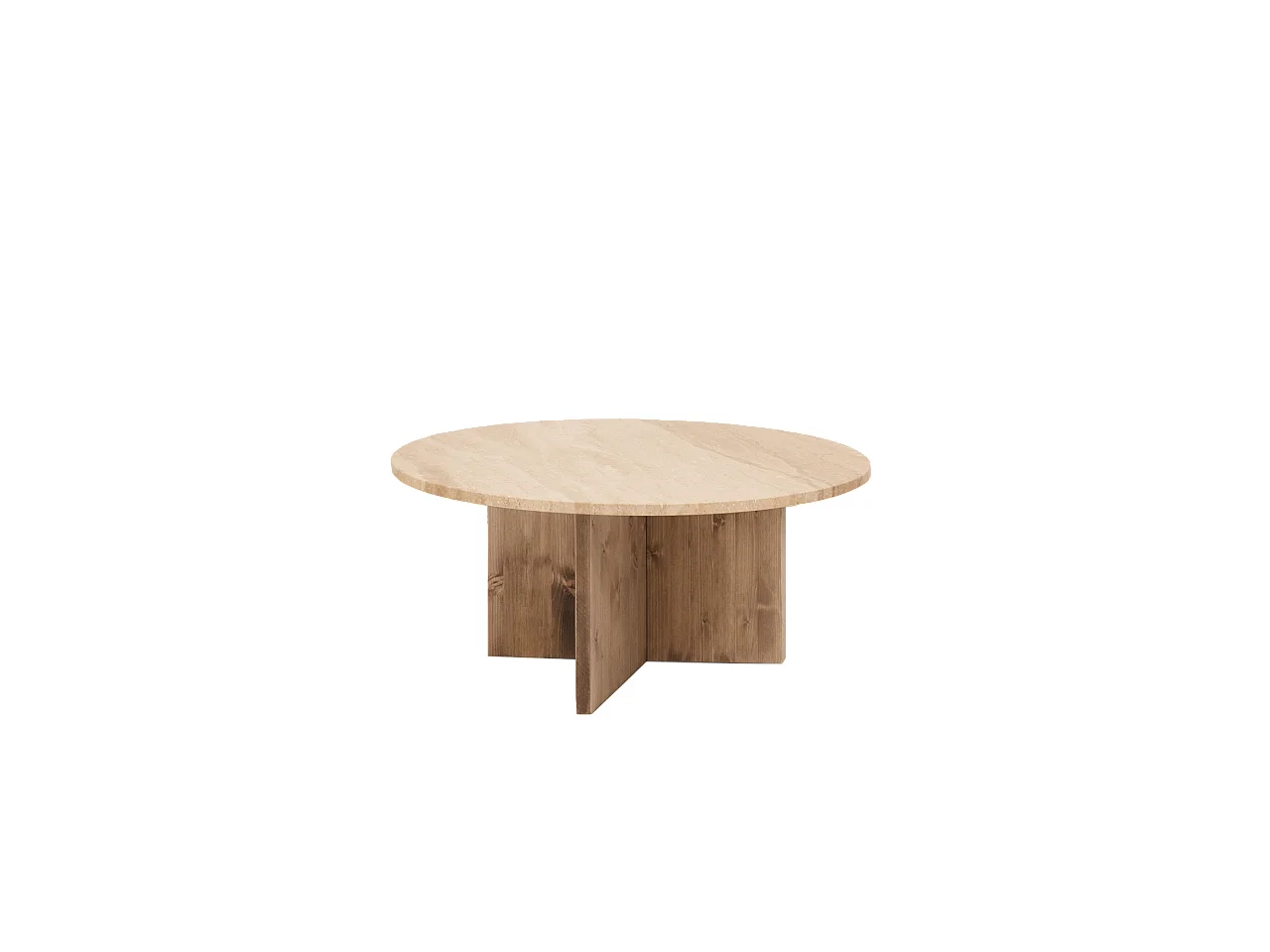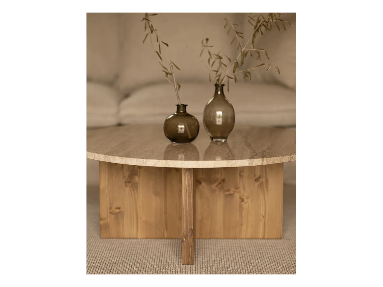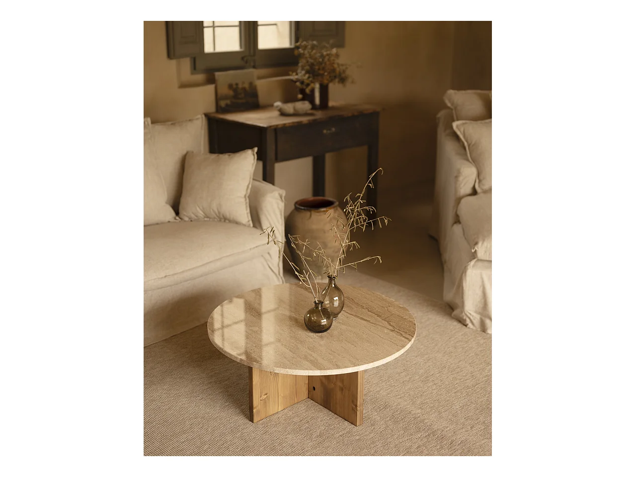 Table basse ronde en marbre daino reale avec pieds en bois massif Ø60cm - TOSCANA - DECOWOOD