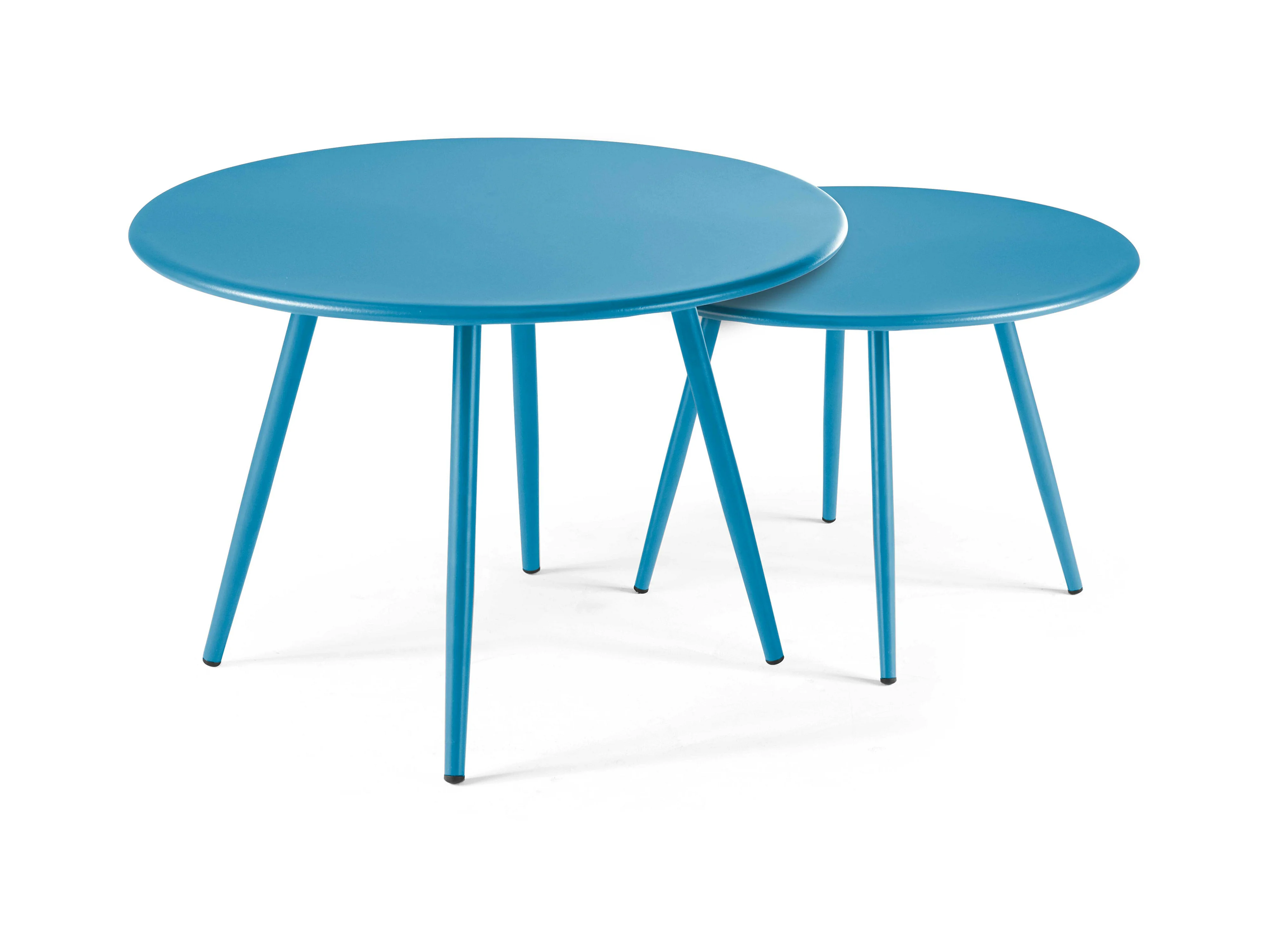 Lot de 2 tables basses ronde en acier bleu pacific - Palavas