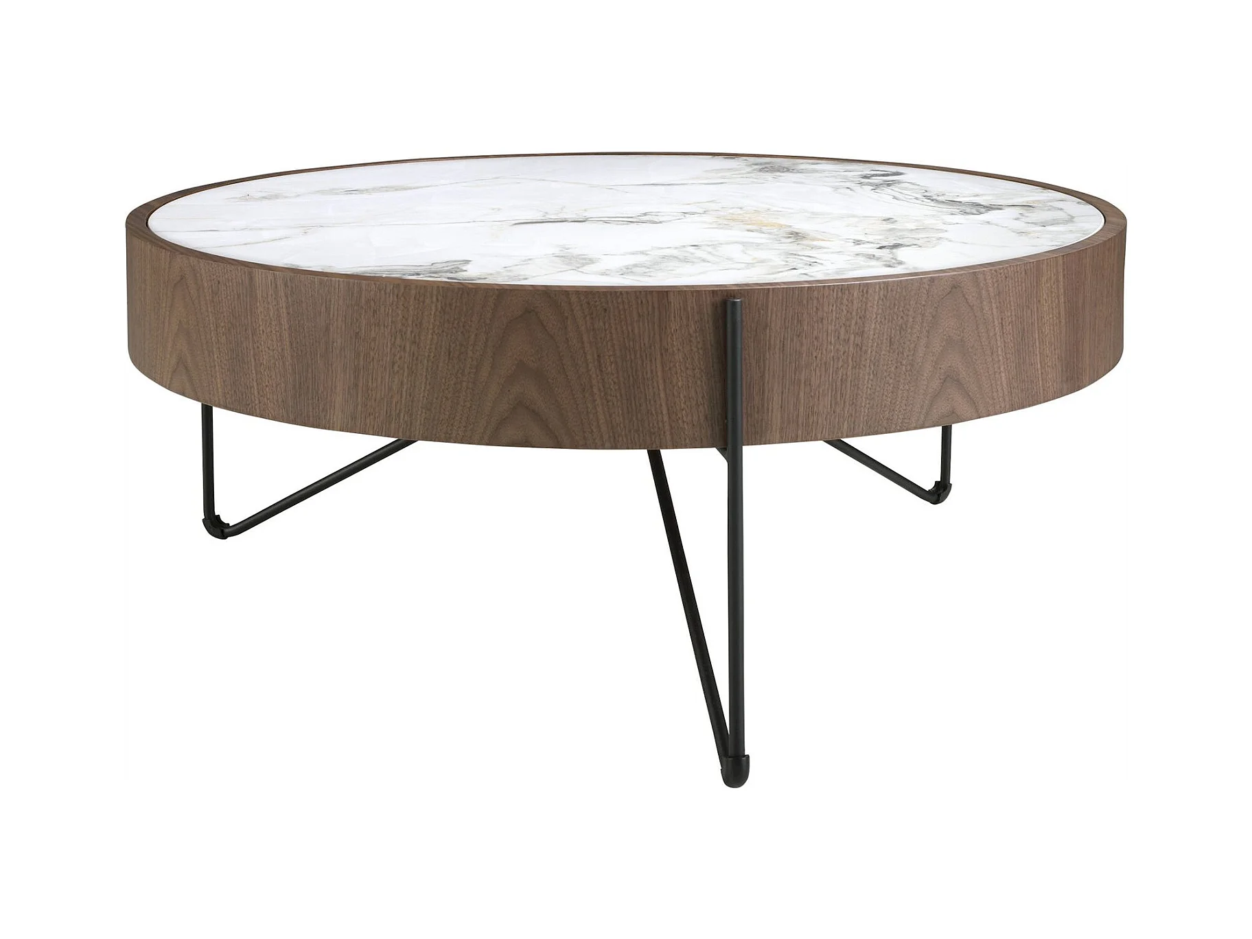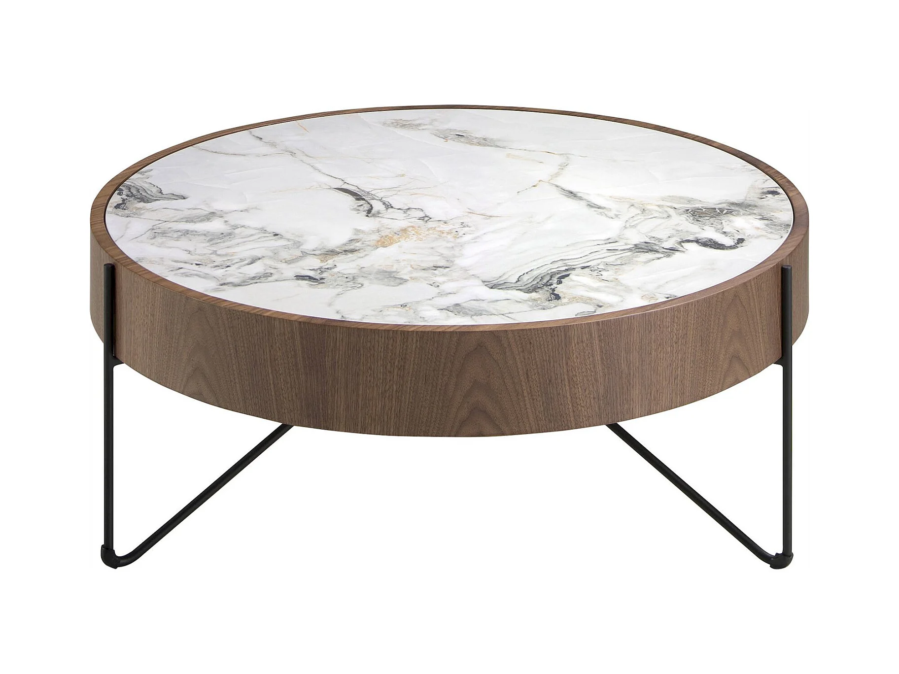 Table basse ronde en noyer et marbre blanc Angel Cerda