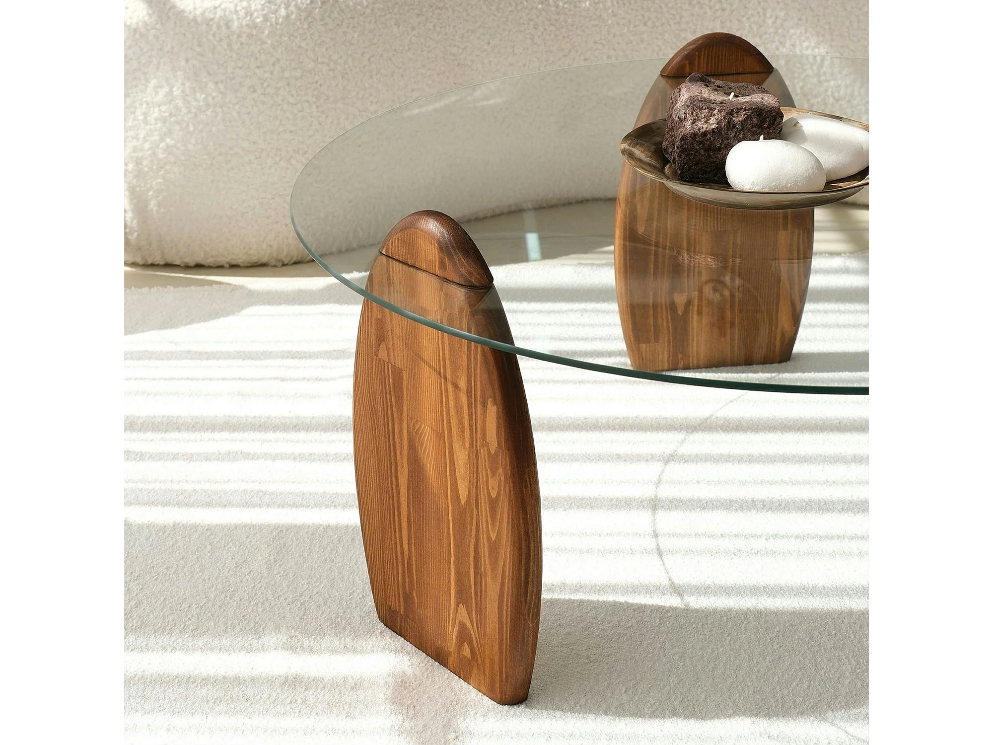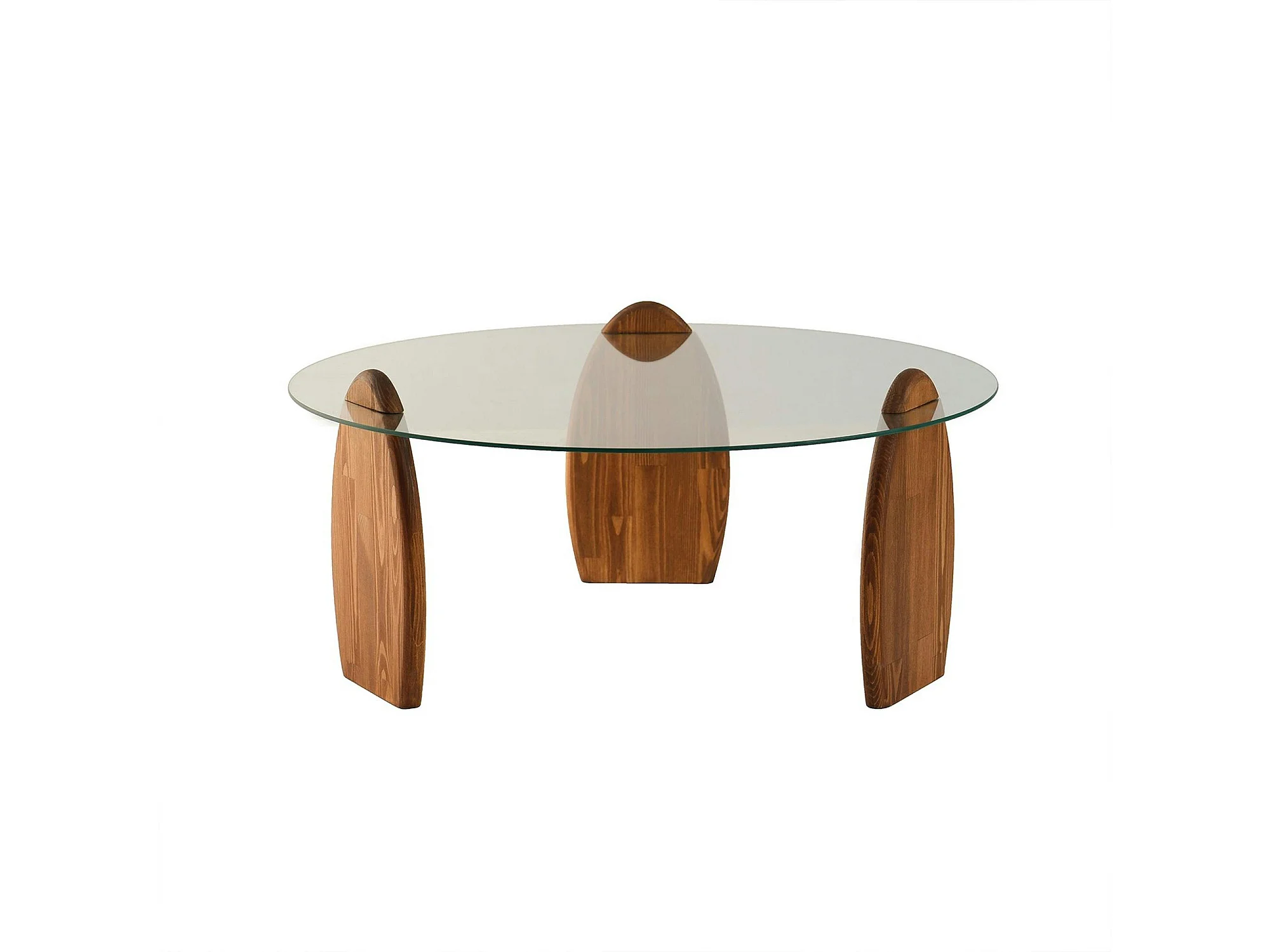 Table basse ronde en verre - 3 pieds bois brun ANZIO