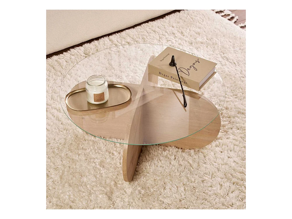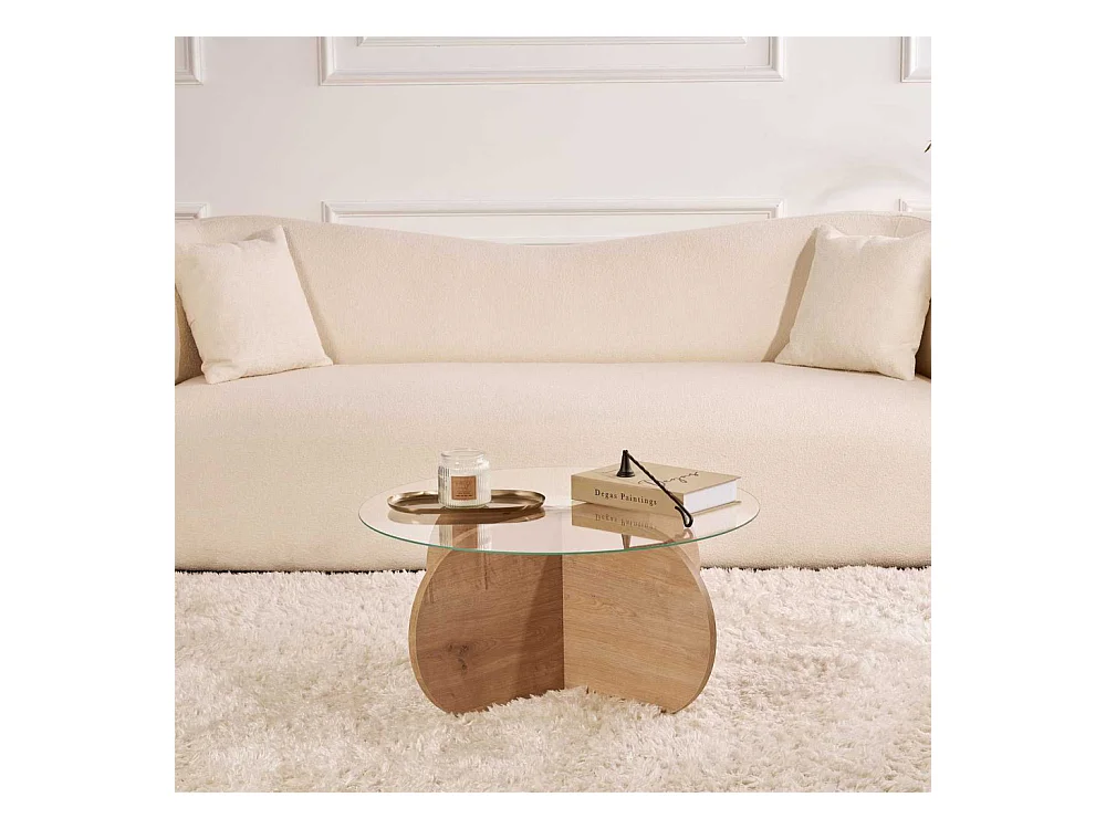 Table basse ronde en bois piètement cannelé Ø80 cm - Ada