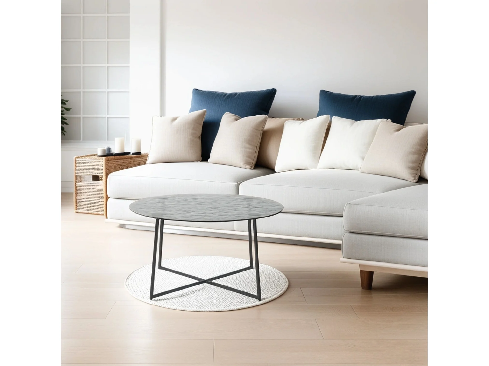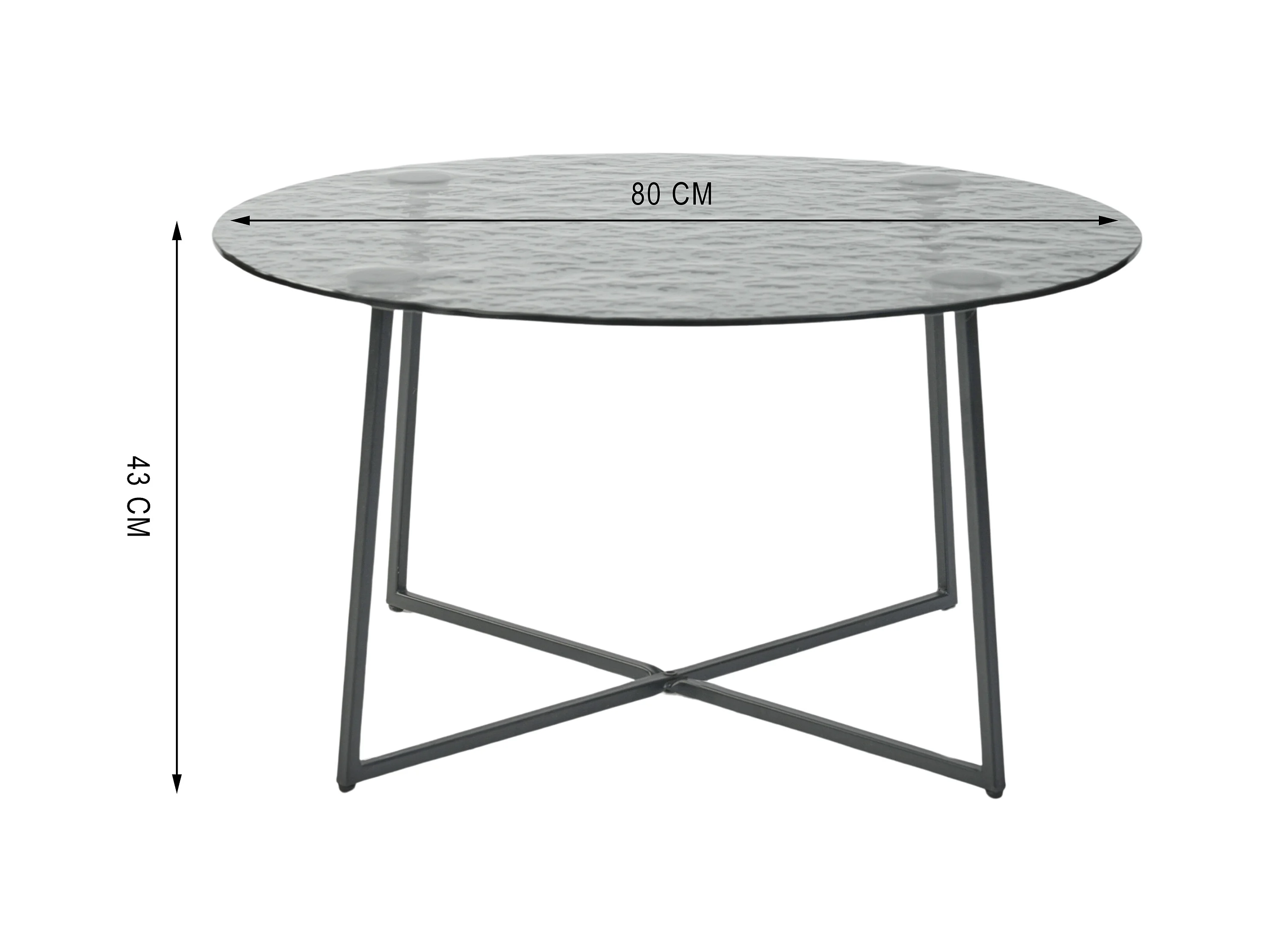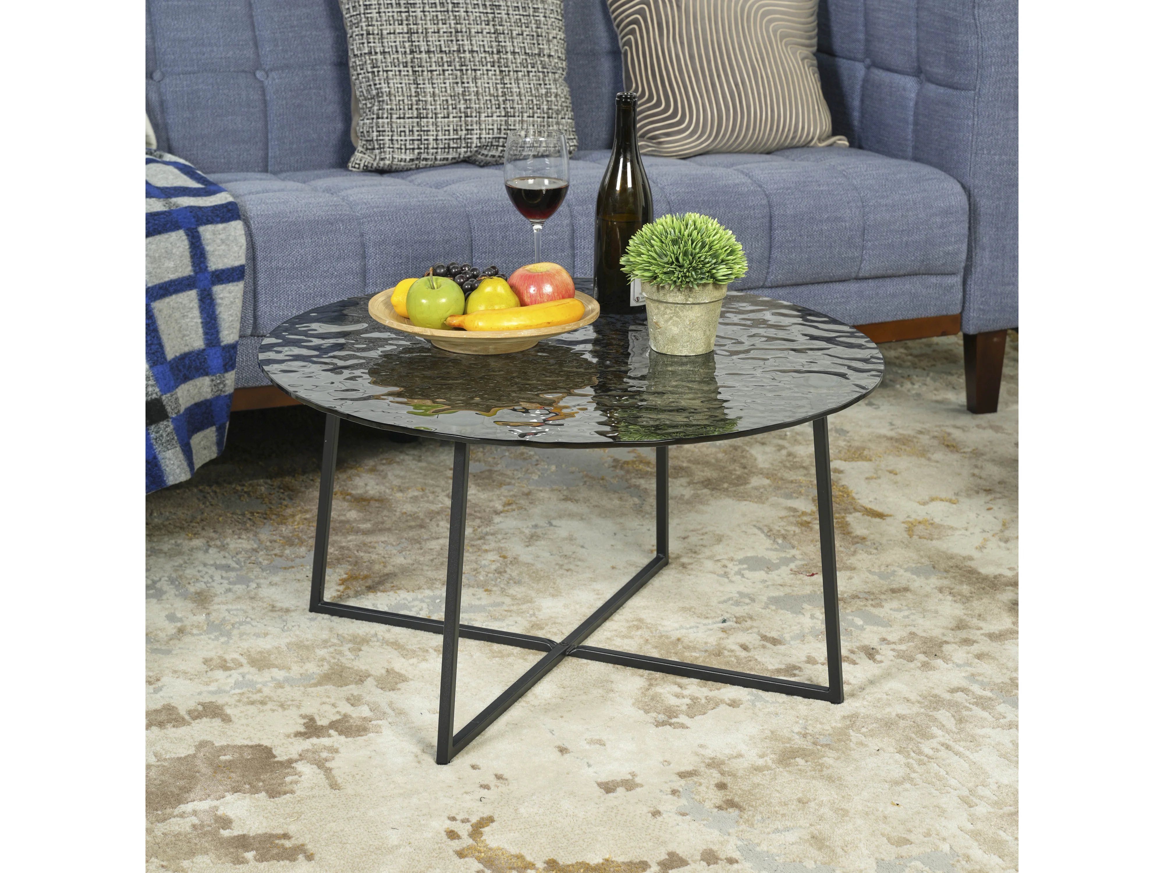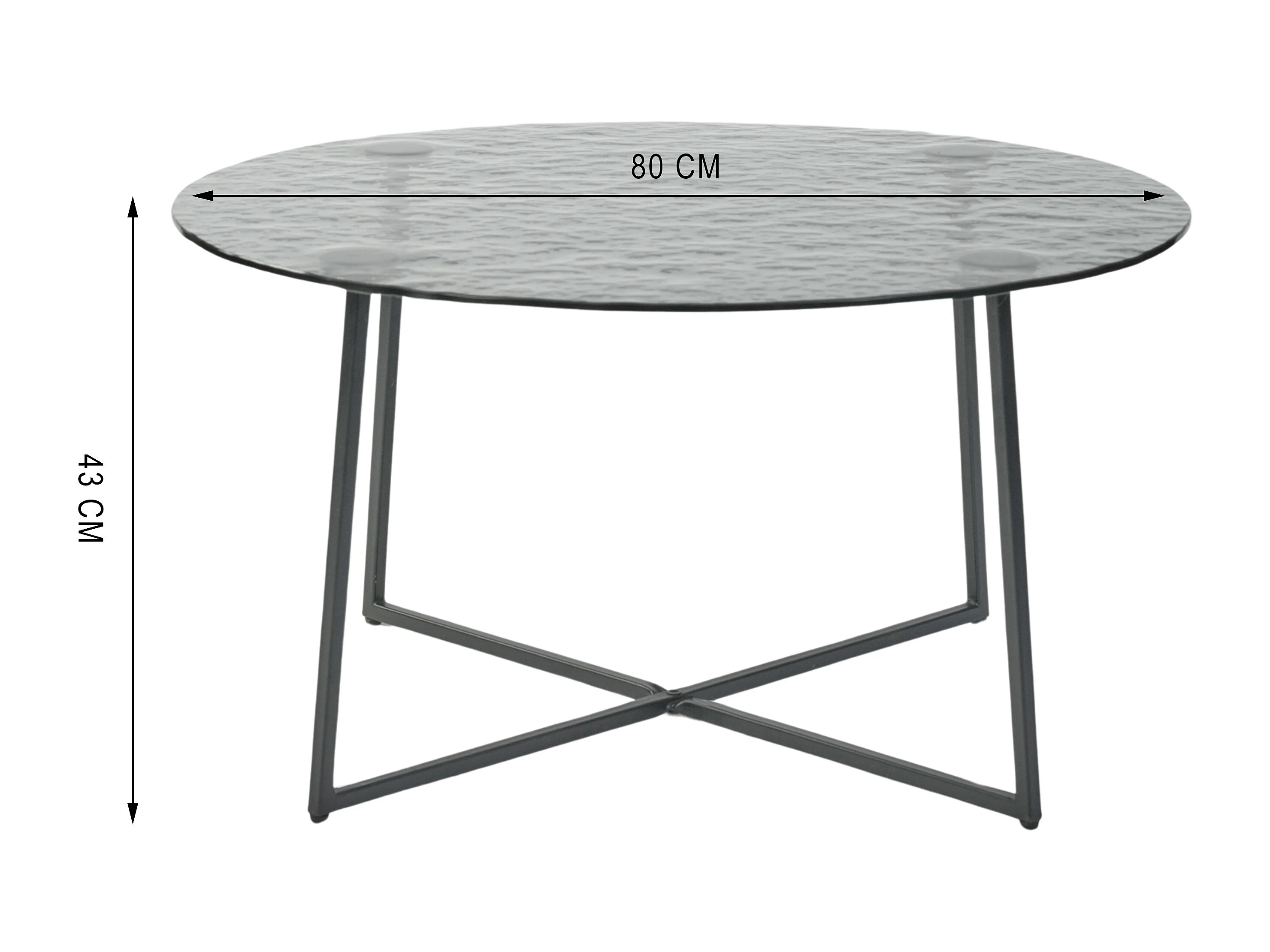 Table basse ronde en verre artisanal thermofusible noir et métal noir 80*80*45cm