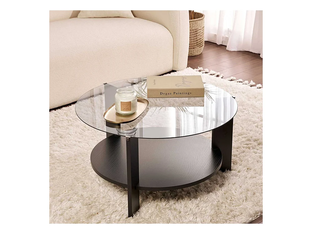 Table basse ronde couleur bois et noir Ø 80 cm - Lexi
