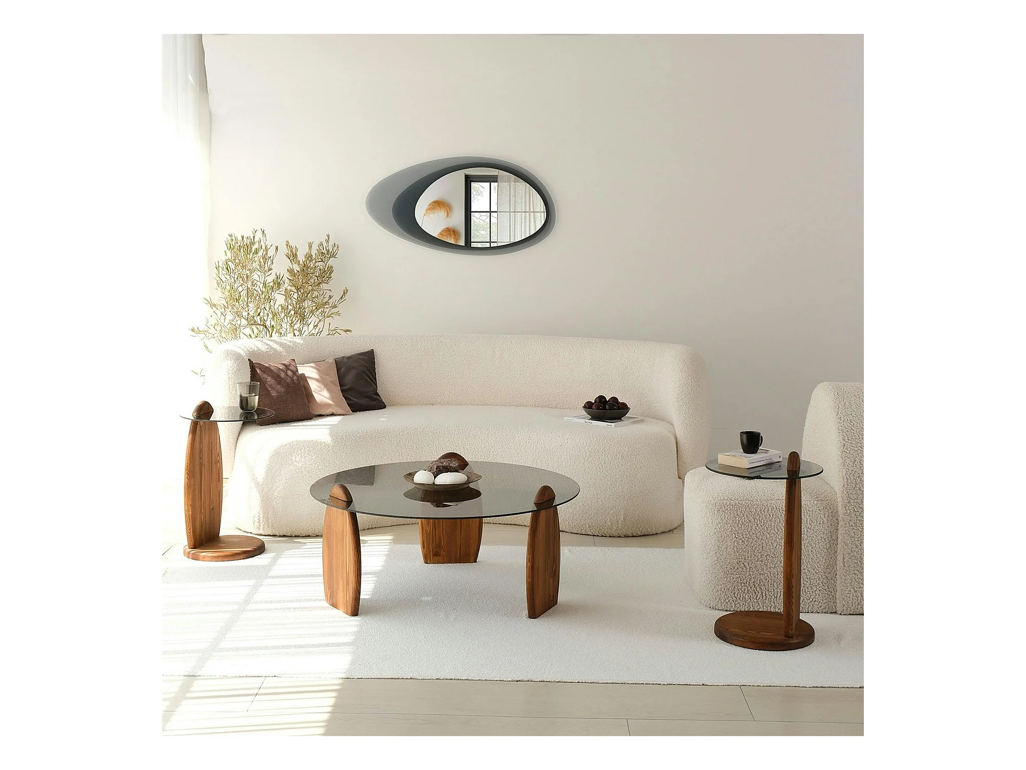 Table basse ronde en verre fumé - 3 pieds bois brun ANZIO