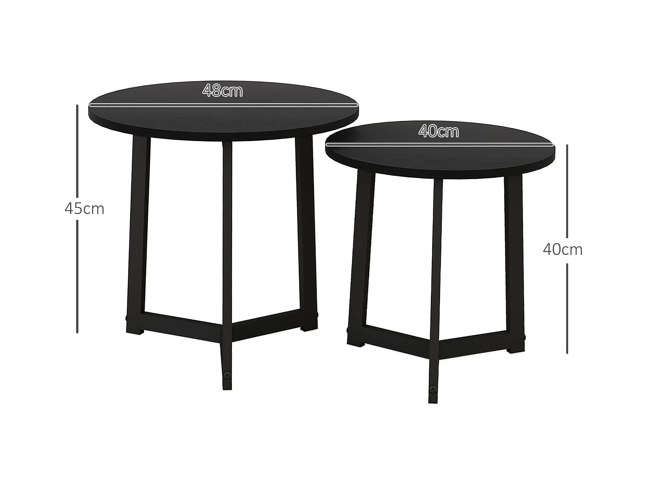 Set de 2 tables basses rondes empilables, design moderne, acier, noir (Ø43/35x38 cm)