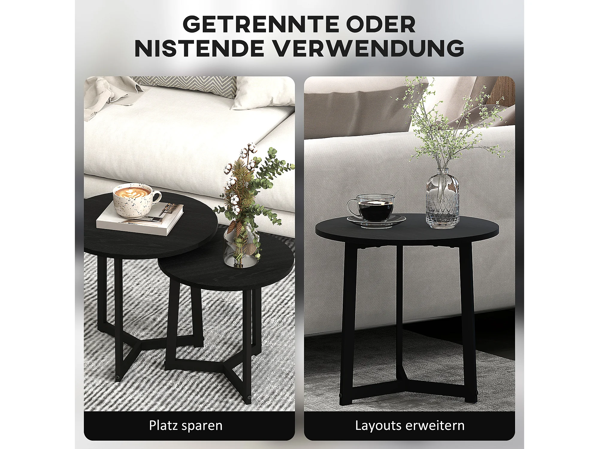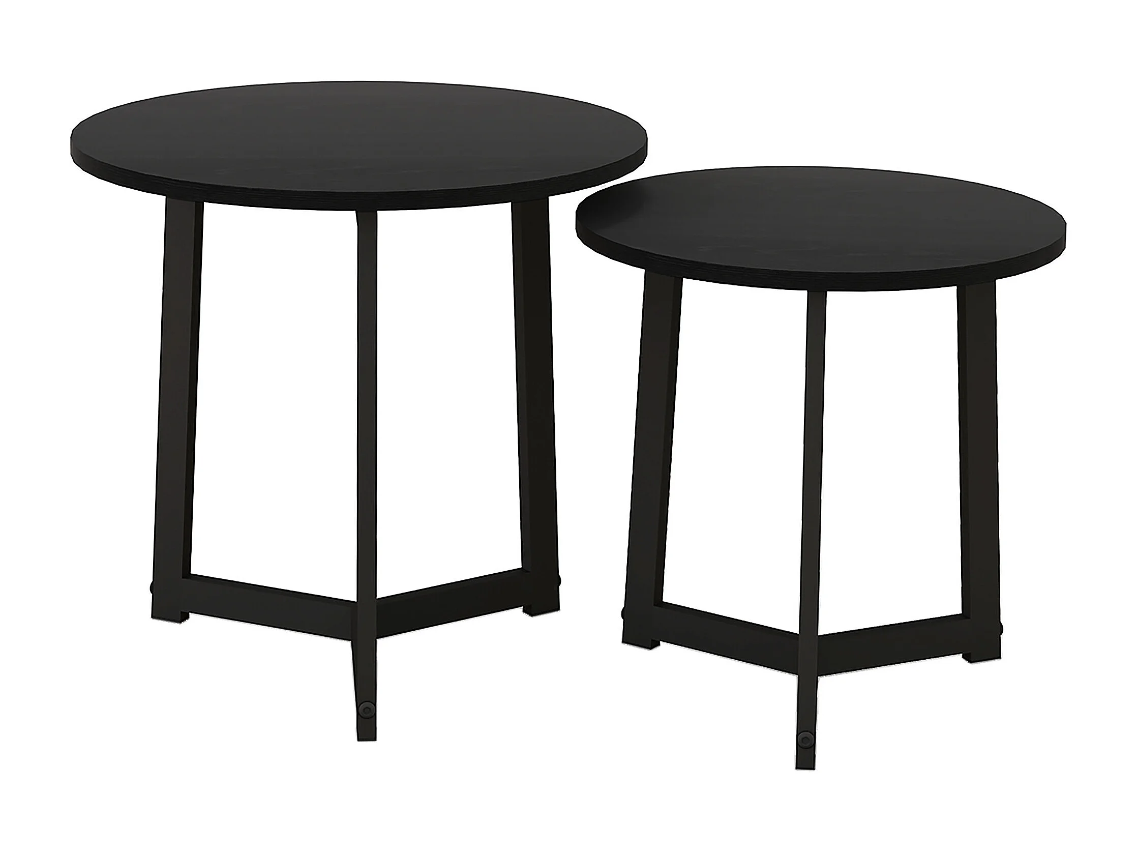 Set de 2 tables basses rondes et ovales empilables, en MDF et acier, noir (50x50x50.5 cm)