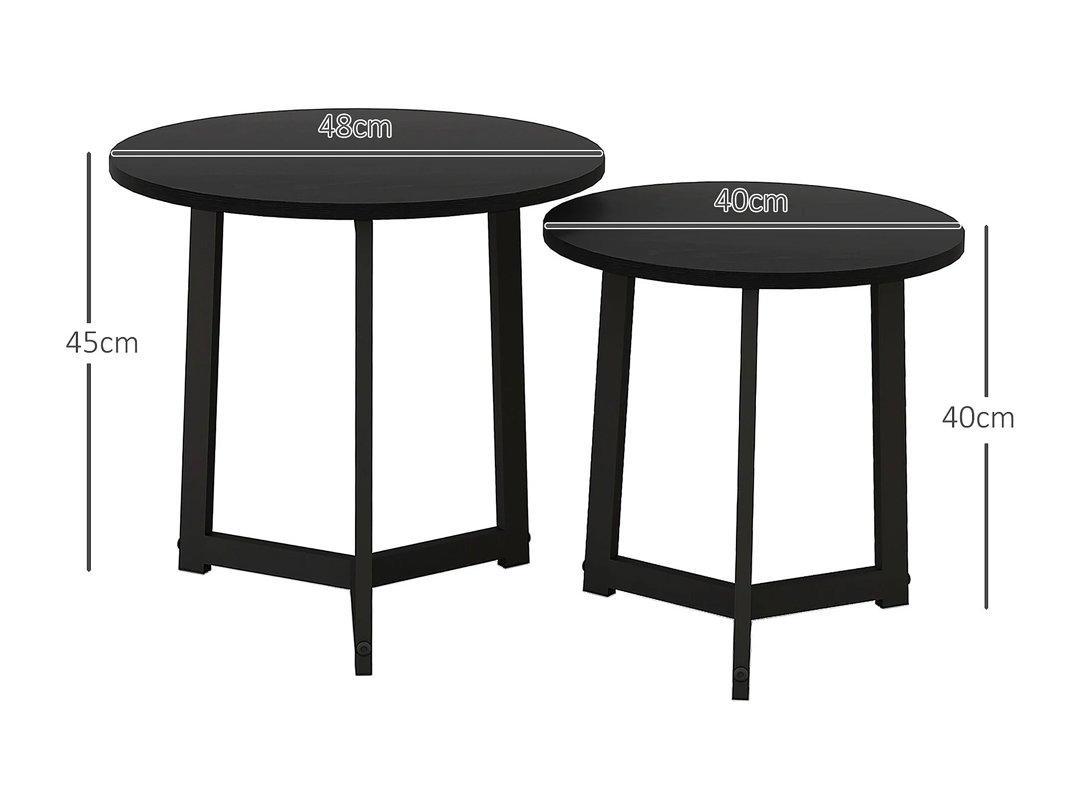 Table basse ronde, ensemble de 2 tables d'appoint, structure en acier, noir (48x48x45 cm)