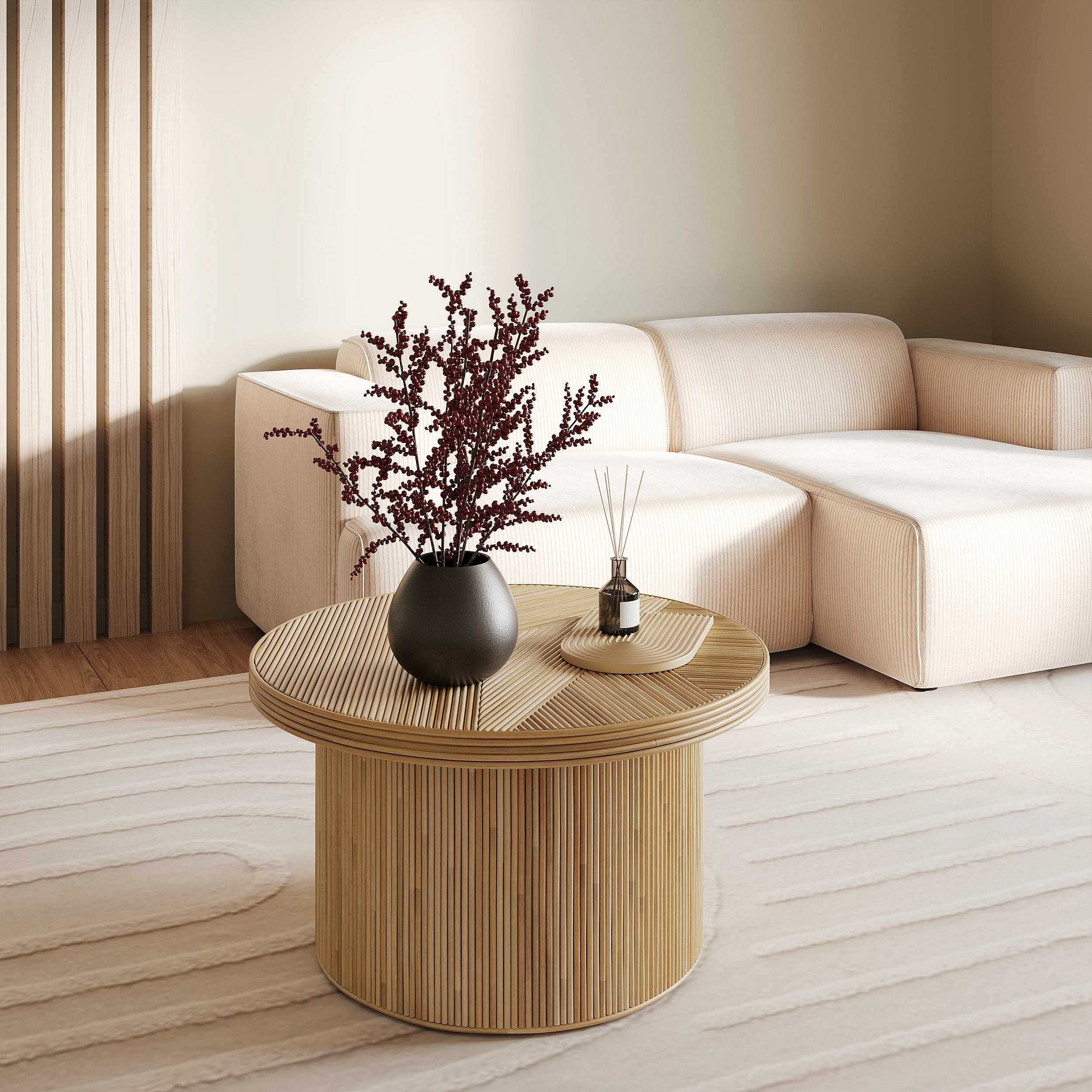 Table basse ronde D80 cm en rotin naturel - Hélène