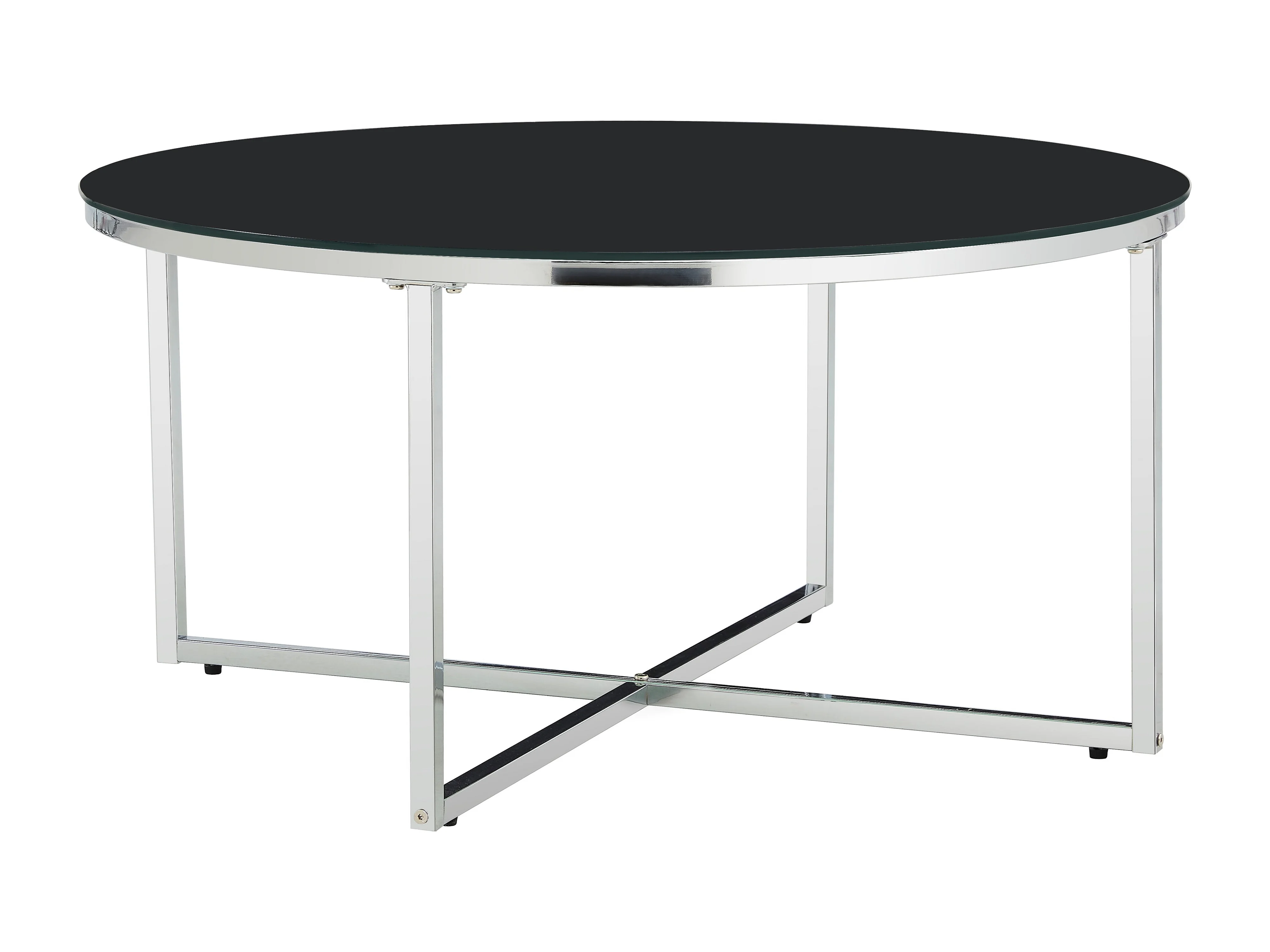 Table Basse LORIE Ronde Plateau Verre Trempé Marbré Noir Structure Métal Chrome D90x45cm