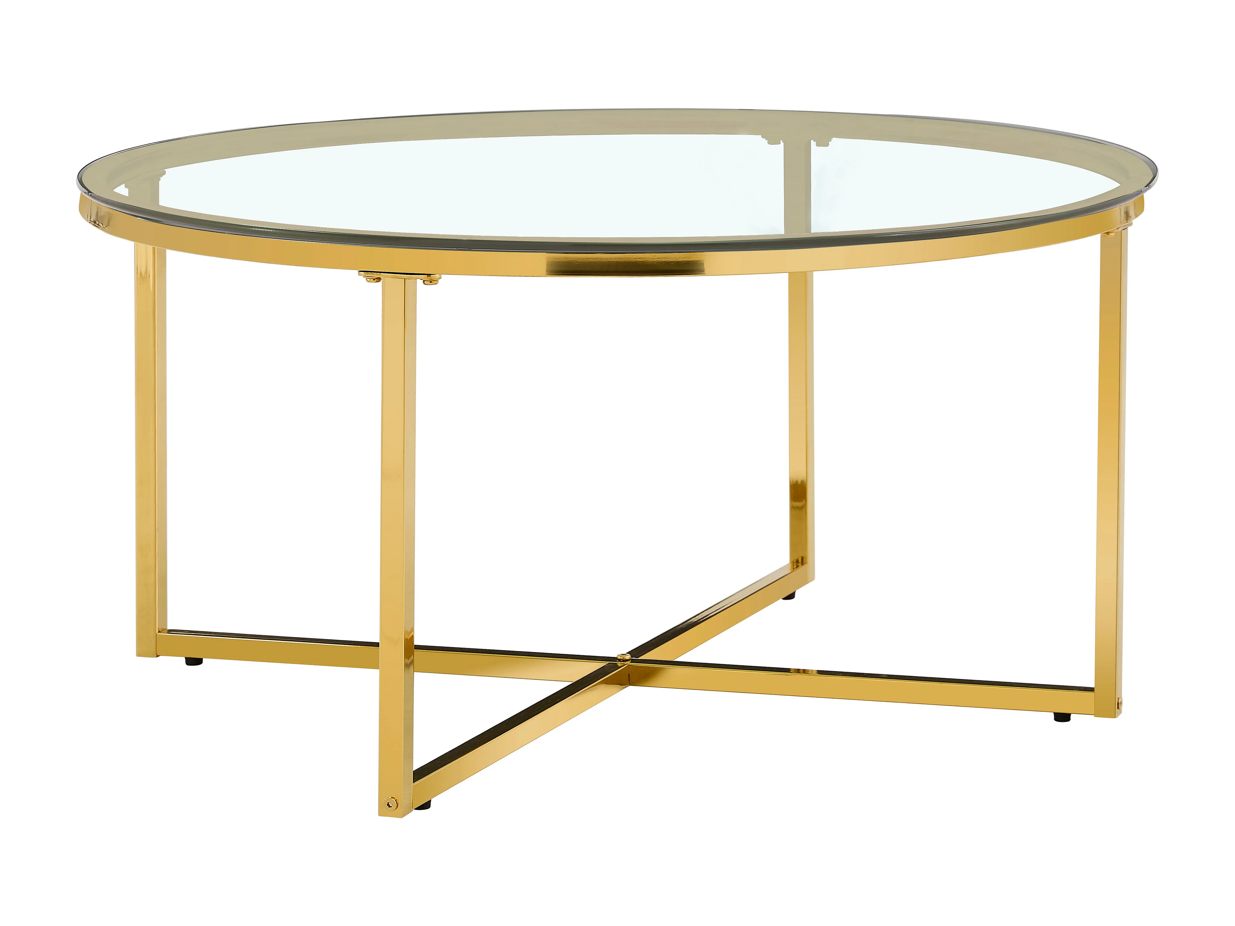 Table Basse LORIE Ronde Plateau Verre Trempé Transparent Structure Métal Gold D90x45cm