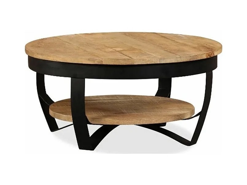 Table basse ronde manguier massif clair et métal noir Bastia