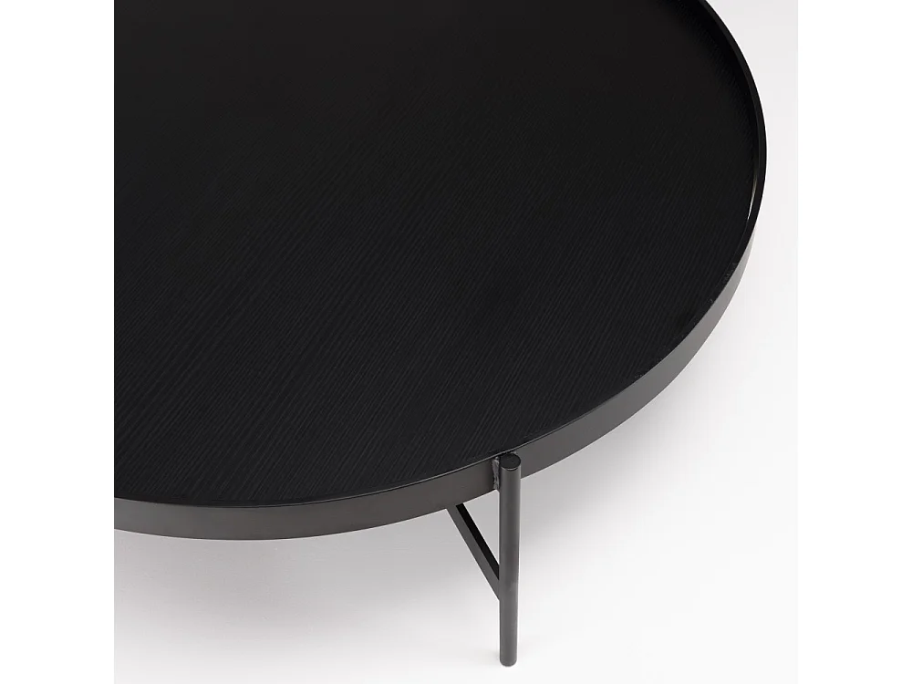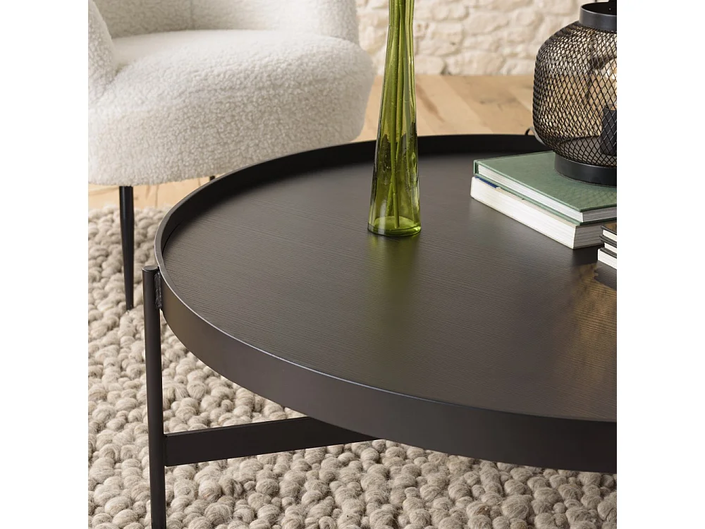 DALY - Table basse en bois ronde noire 102x102cm piètement métal