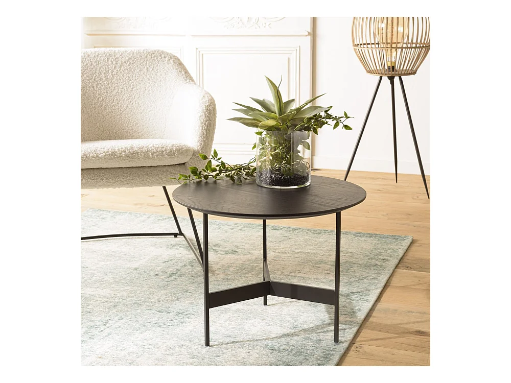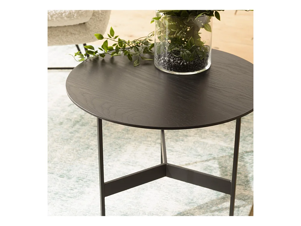 DALY - Table basse en bois ronde noire 50x50cm piètement métal