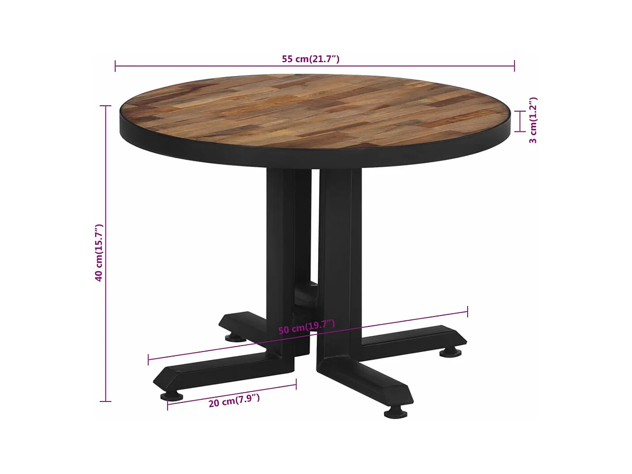 Table basse ronde Ø55x40 cm teck de récupération massif