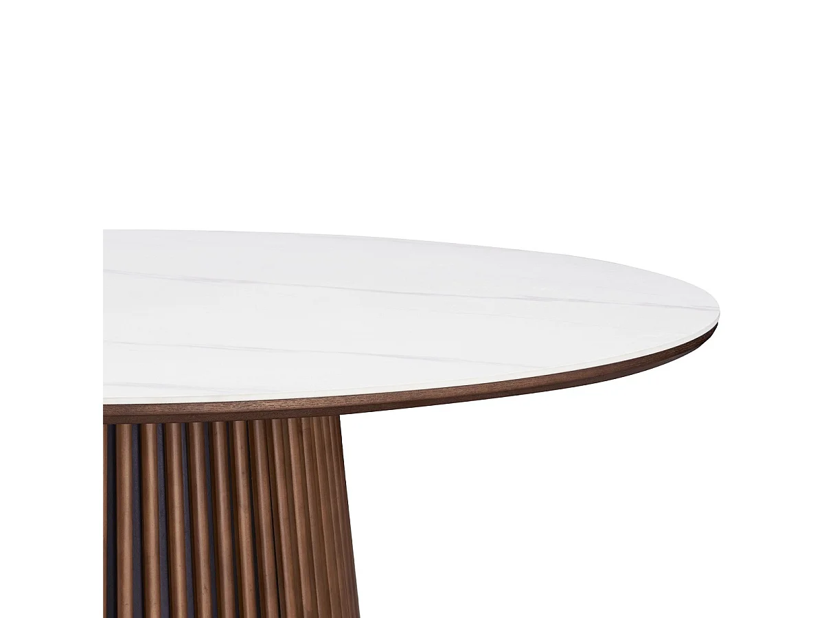 Table basse ronde plateau en céramique effet marbre et bois foncé Ø80 cm - Ada
