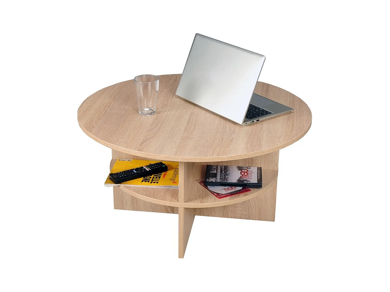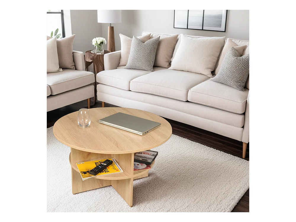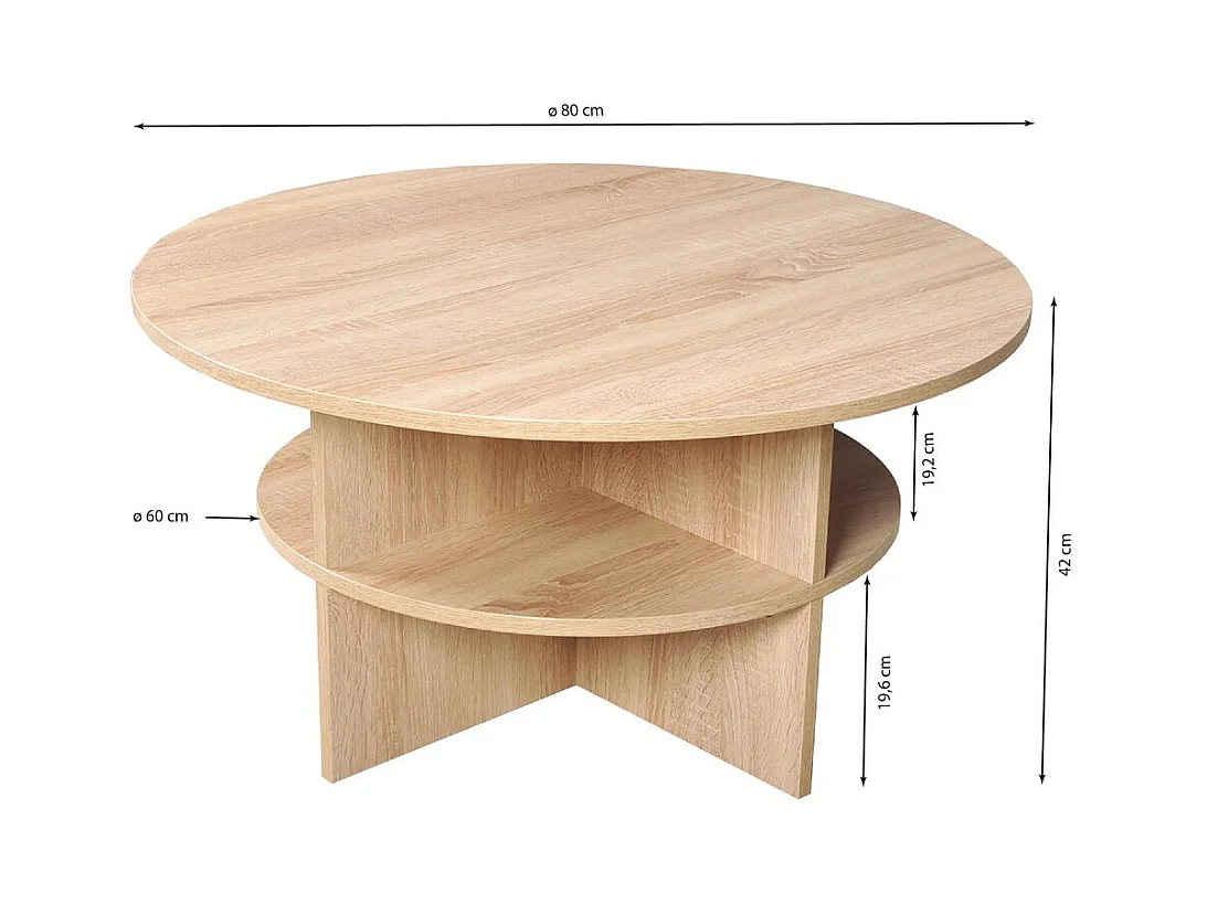 Table basse ronde Rondo diam. 80 / décor chêne blanchi
