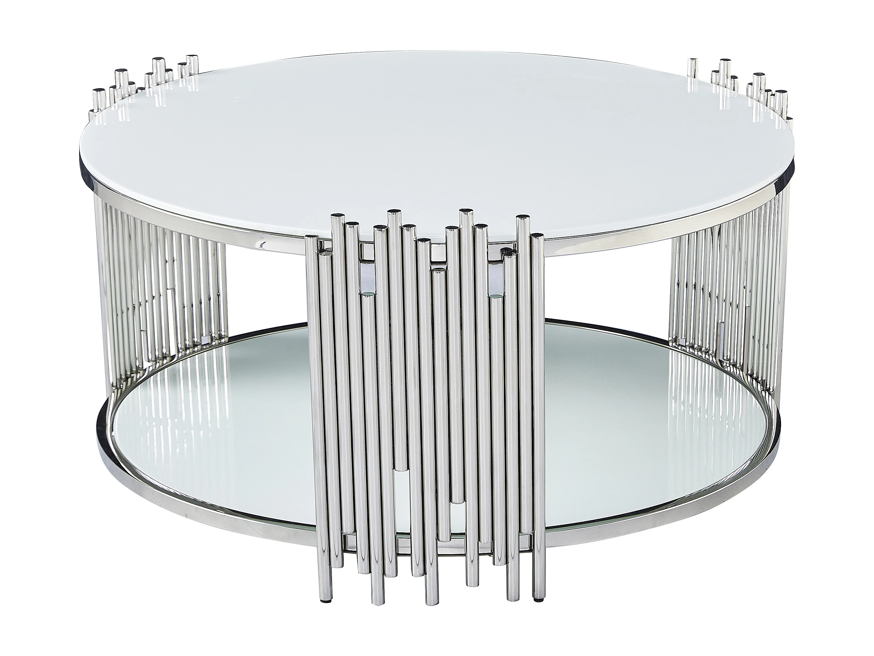 Table Basse ronde STICK Chrome et plateau en verre BLANC D90 H45 cm