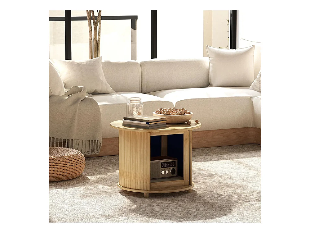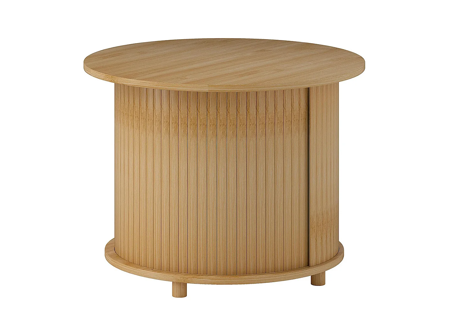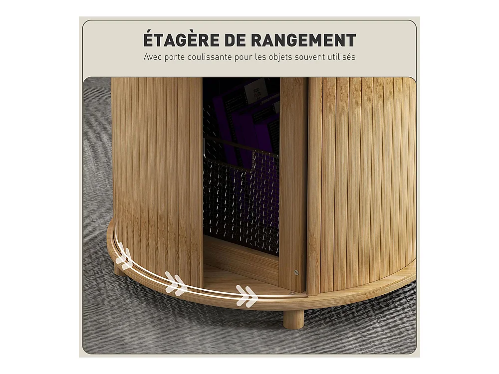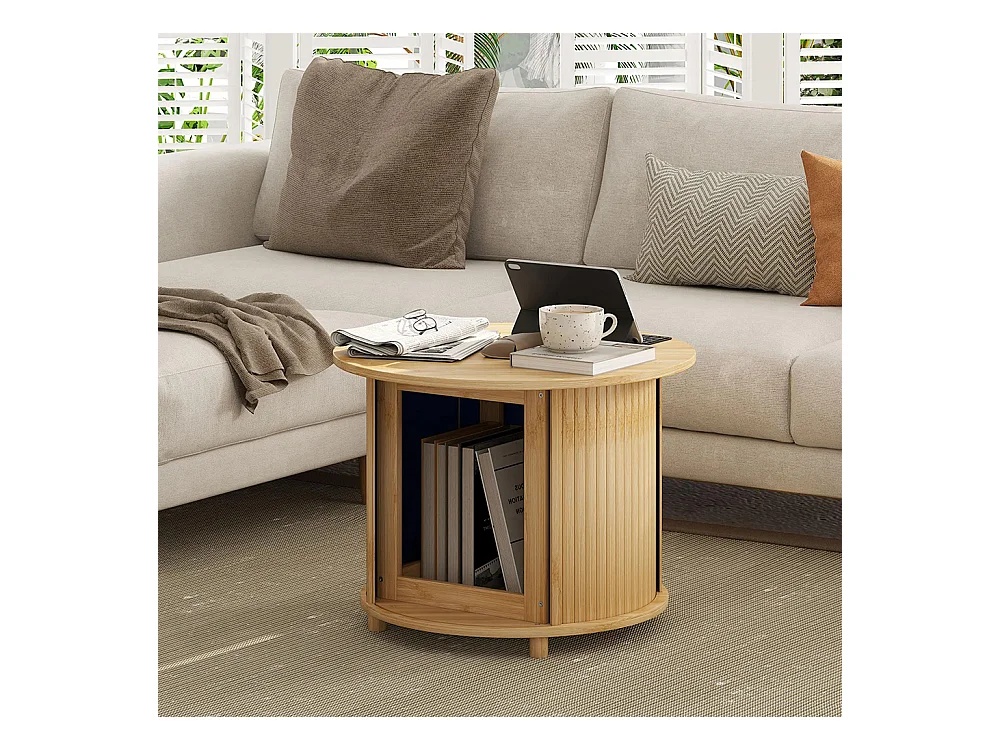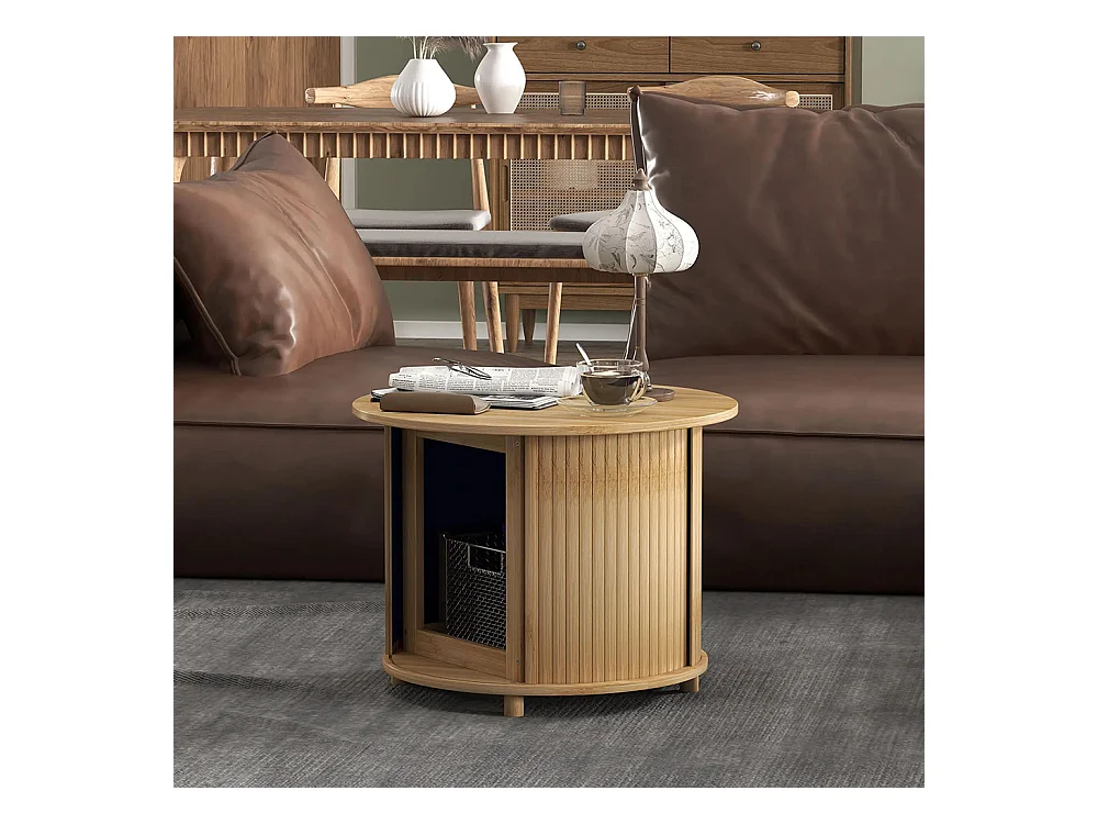 Table basse ronde table de salon en bambou avec rangement caché et porte coulissante, 60 x 45cm, bois naturel