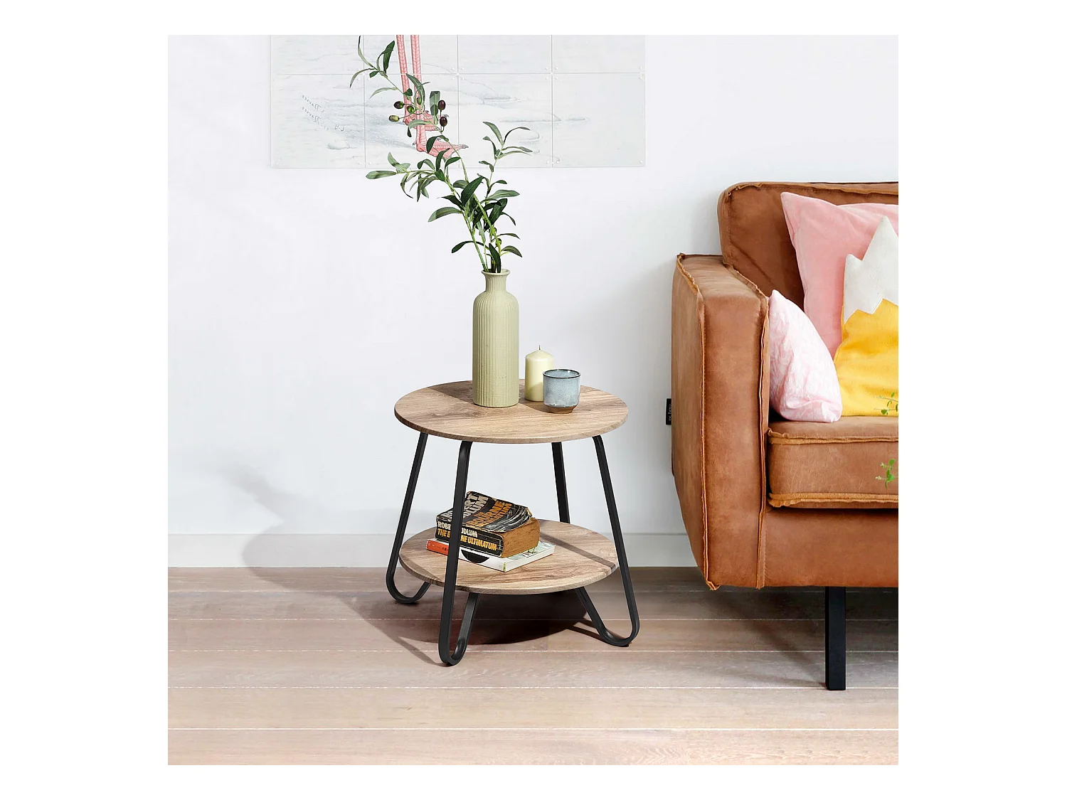 Table basse ronde Table d'extrémité Table d'appoint avec rangement