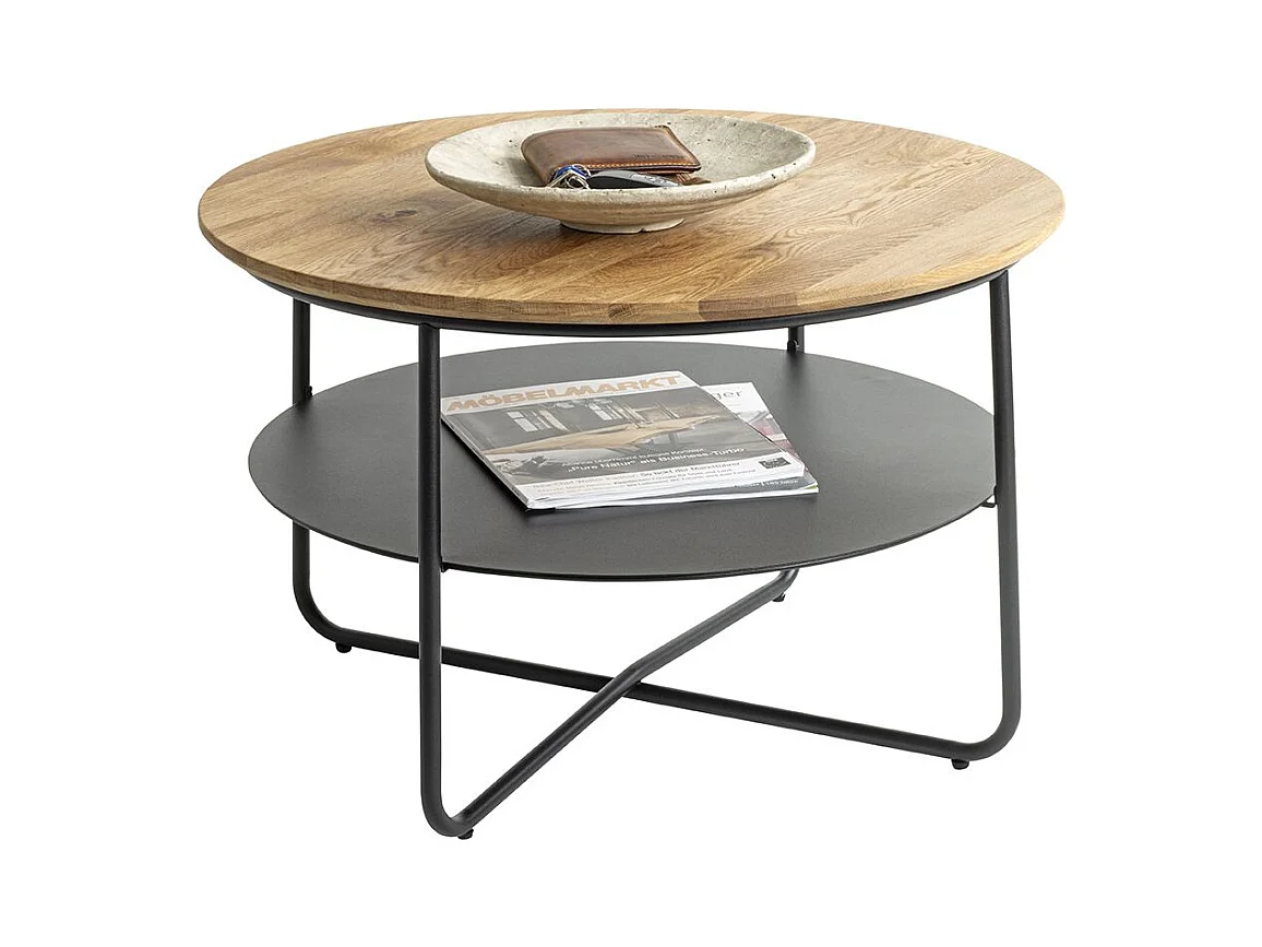 Table basse ronde table séjour et salon coloris chêne et métal en noir - Diamètre 70 x Hauteur 45 cm