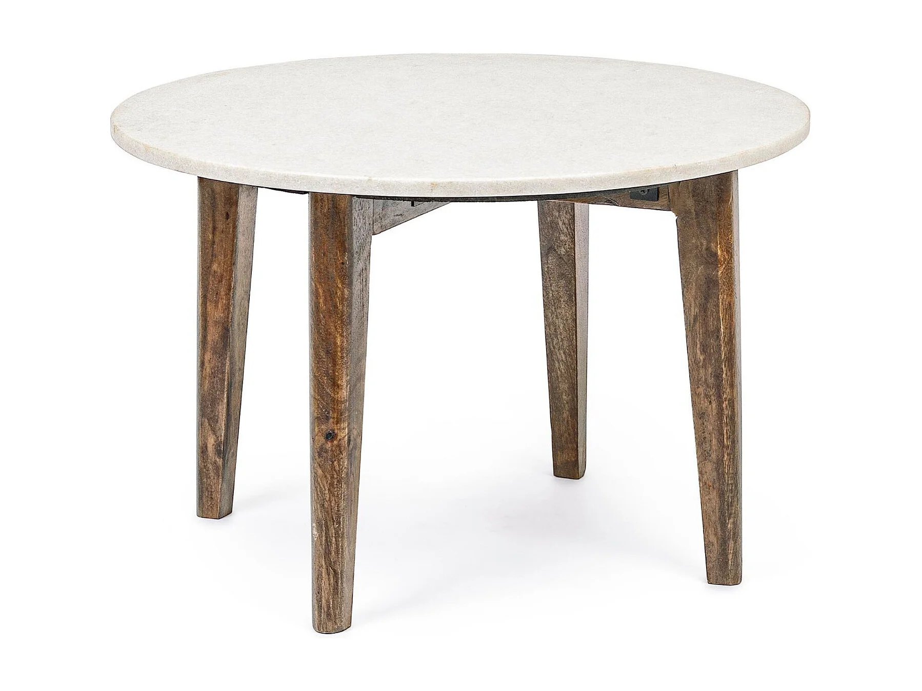 Table basse ronde vintage en manguier et marbre blanc D60 - BLANY