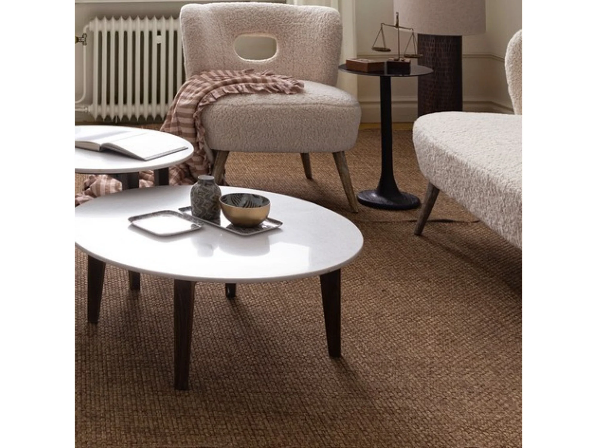 Table basse ronde en marbre et bois massif NANDA - Blanc
