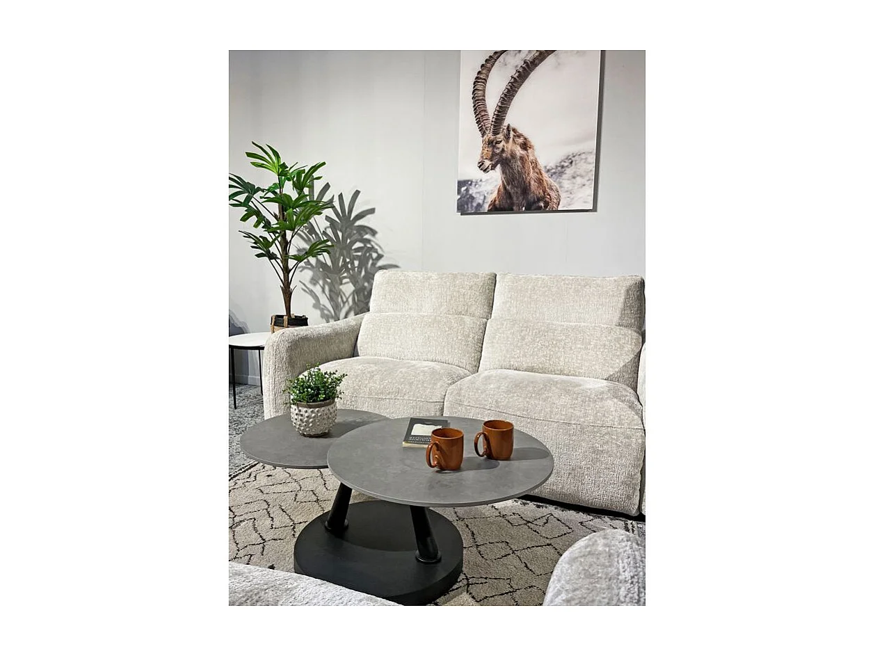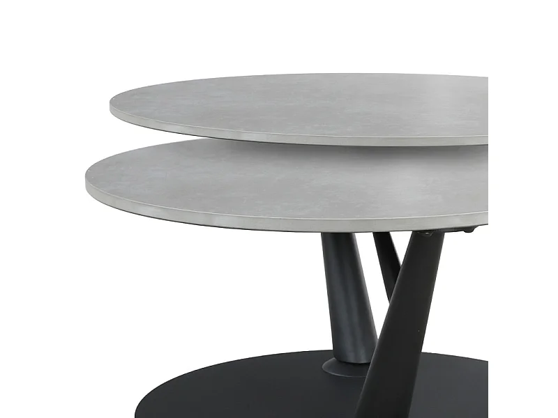Table basse rotative 2 plateaux ronds céramique gris pied noir – ALLEGRA