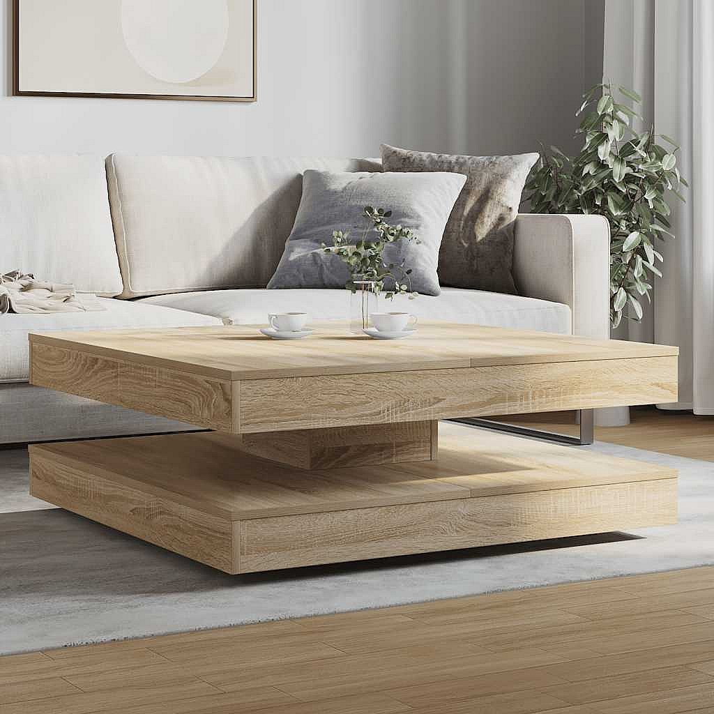 Table basse rotative à 360 degrés chêne sonoma 90x90x34,5 cm
