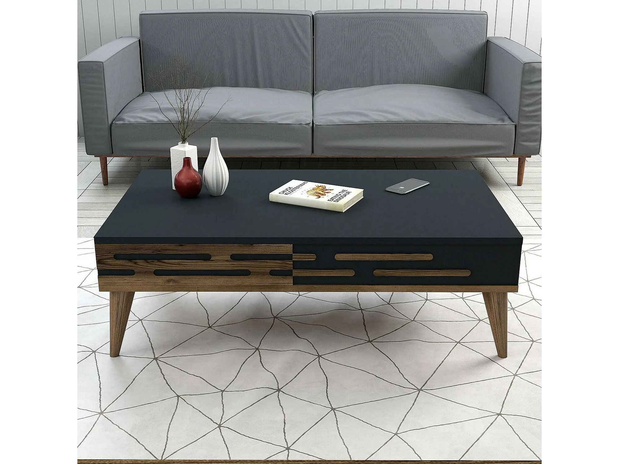 Table basse Saiph, Table basse, Porte-revues pour canapé, Etagère de salon, 105x35h60 cm, Noyer et Anthracite