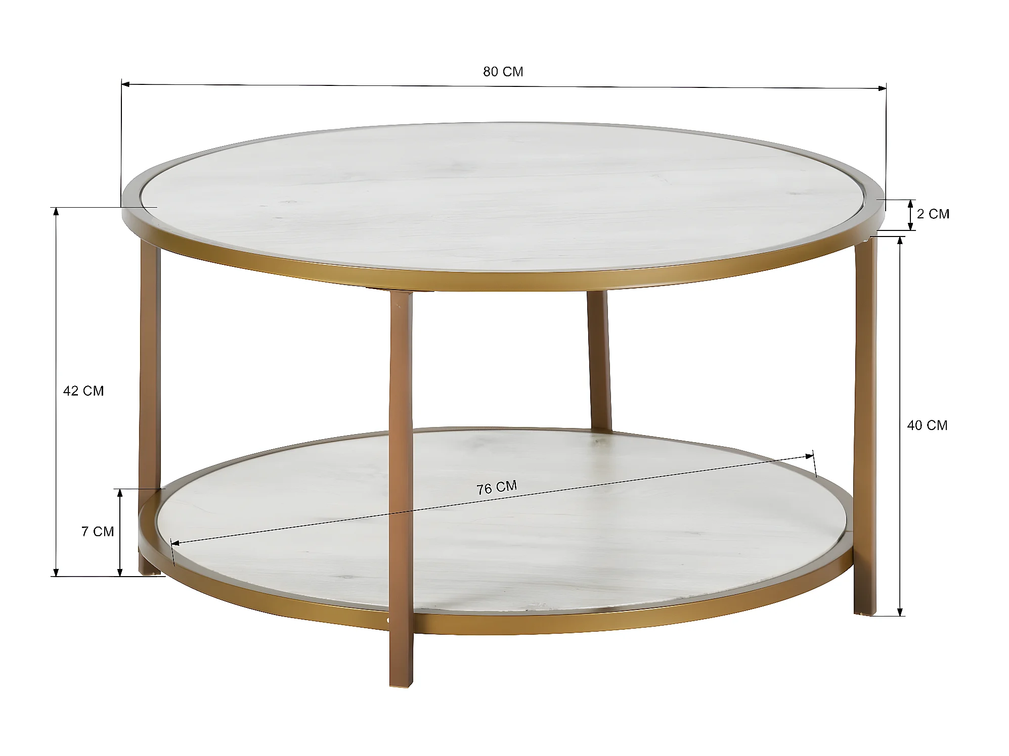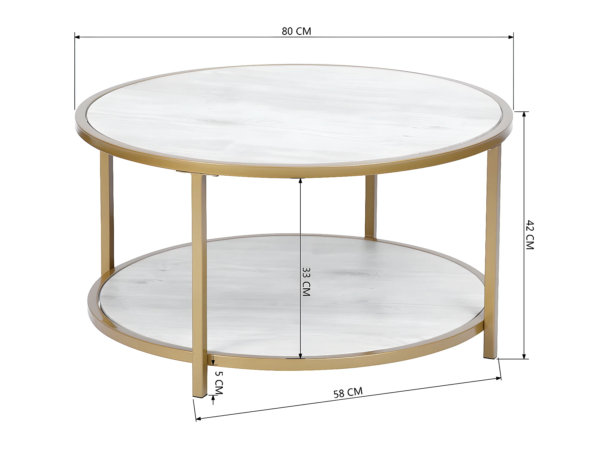 Table basse salon en design marbre et doré NEKA SMALL WHITE WOOD A