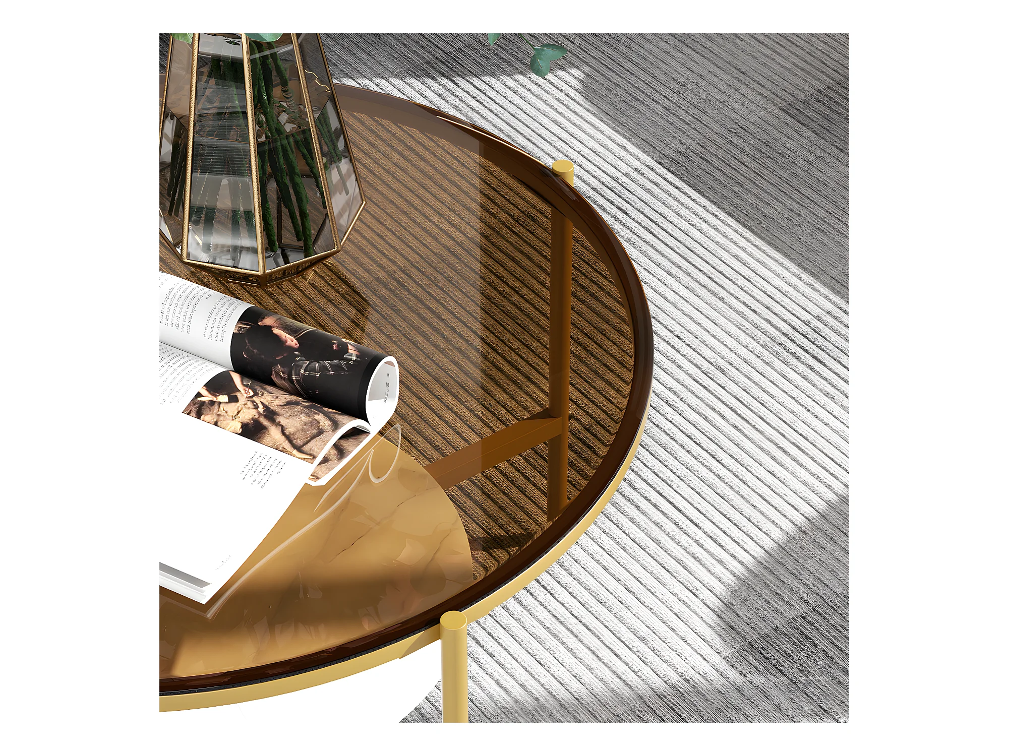 Table Basse Salon Ronde en Verre Table Meuble Dorée 80x80x47.5cm