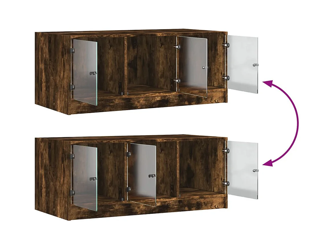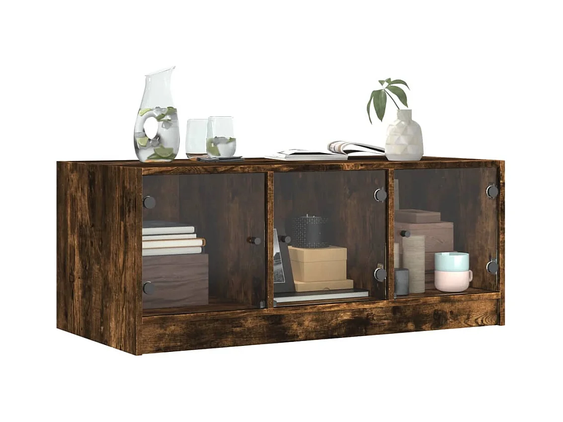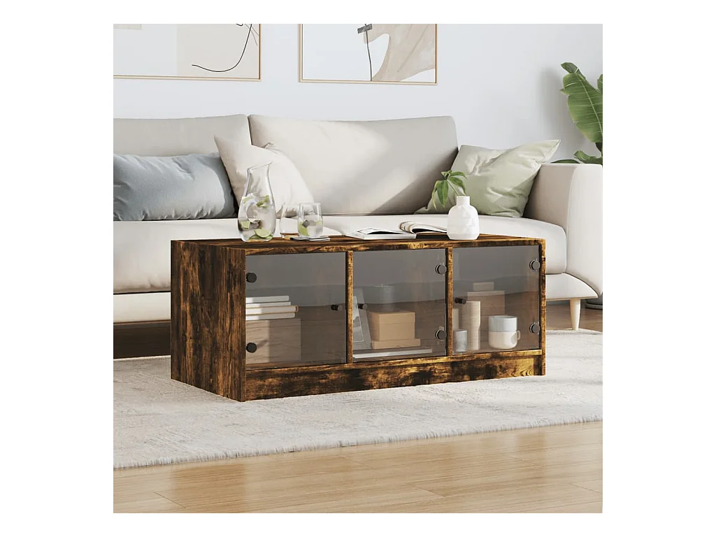 Table basse avec portes en verre chêne fumé 102x50x42 cm