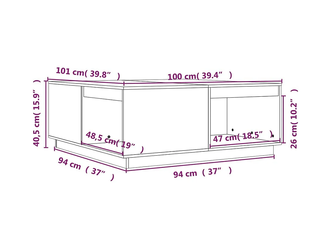 Table basse salon-Table d'appoint 100x101x40,5 cm Bois massif de pin SHL75346