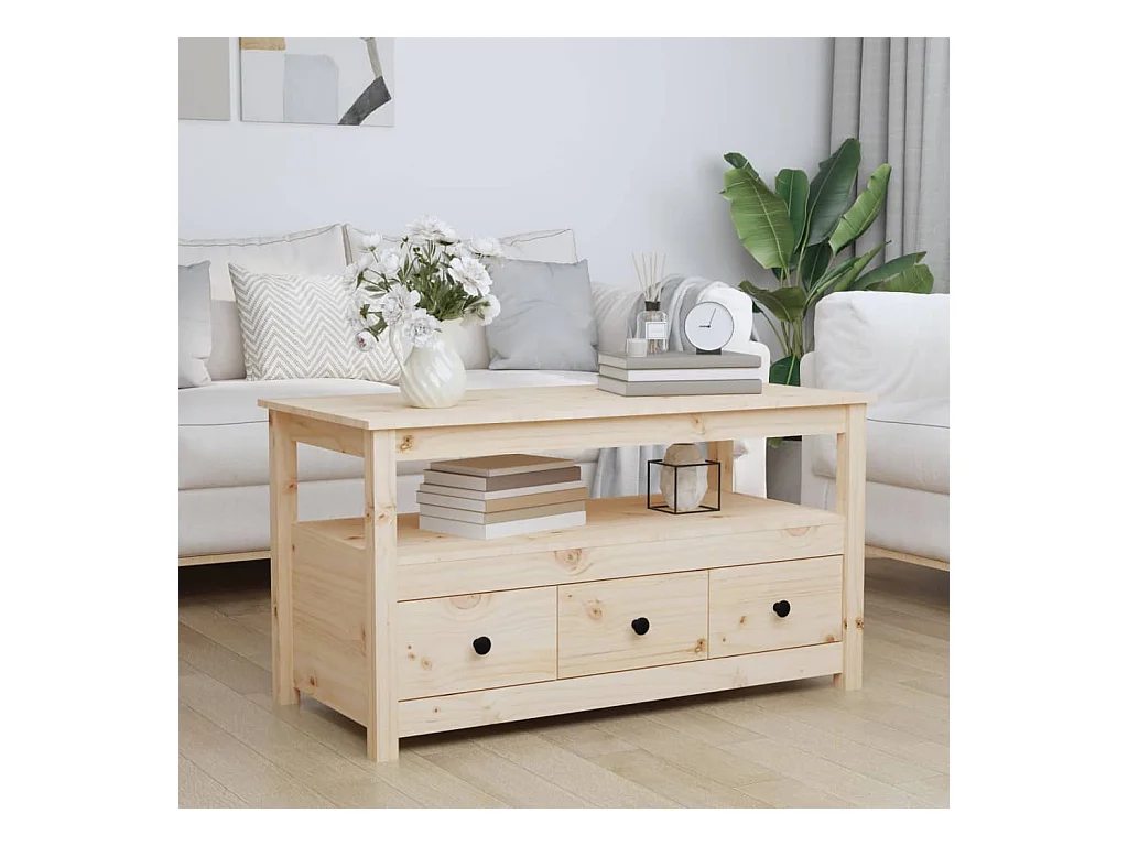 Table basse 102x49x55 cm Bois massif de pin OFR94364 BonneVie Meuble
