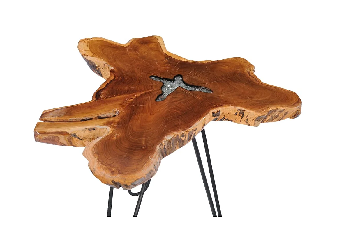 Table basse salon-Table d'appoint 70x45 cm Bois de teck massif et polyrésine SHL19693
