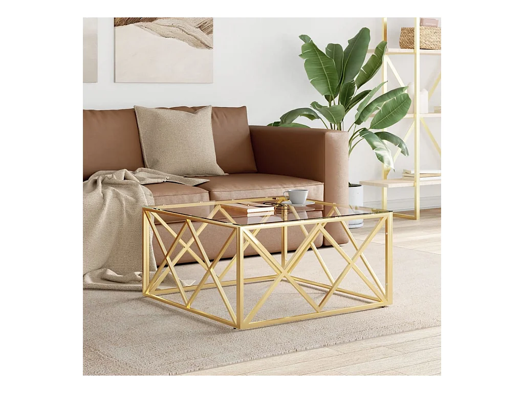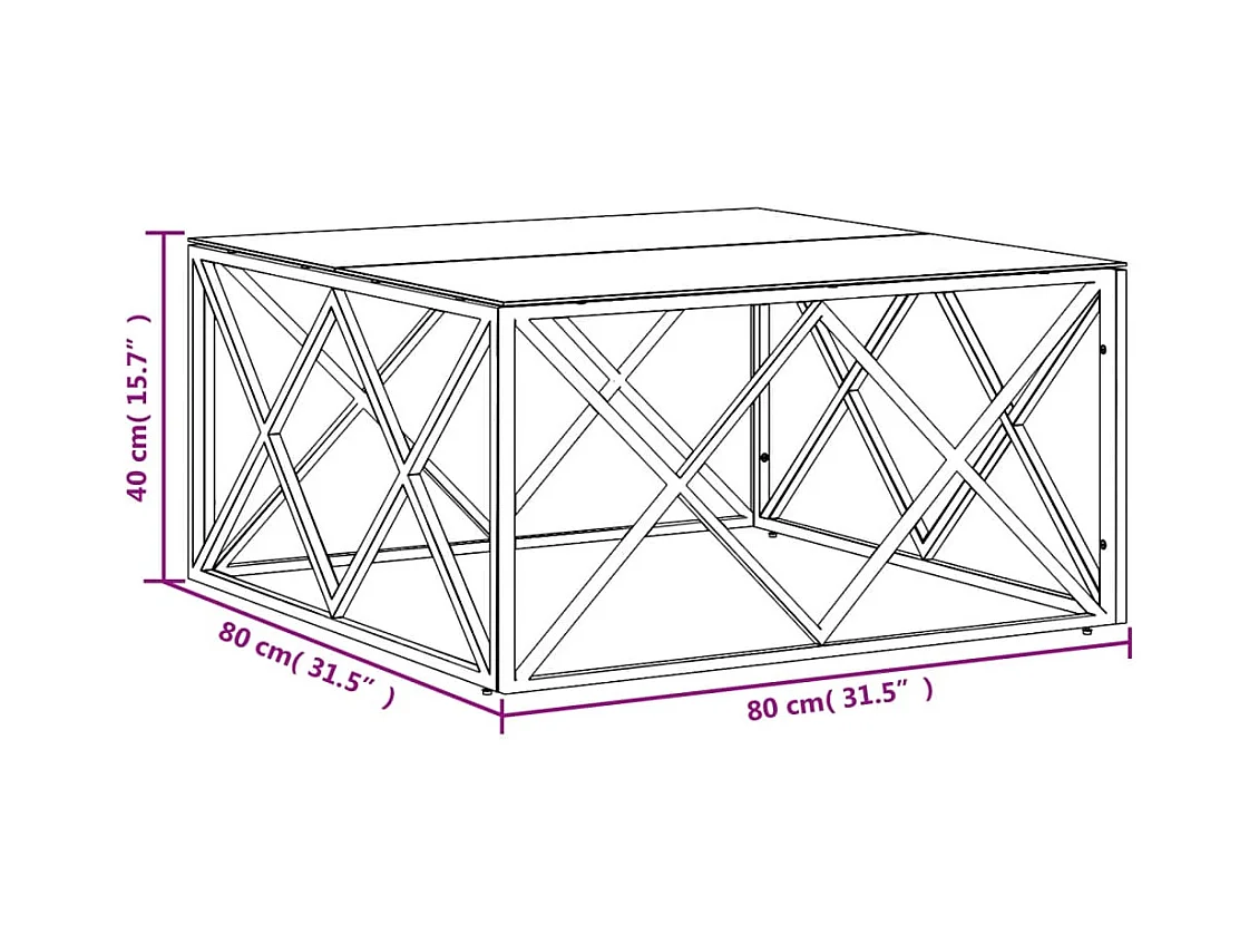 Table basse salon-Table d'appoint 80x80x40 cm acier inoxydable et verre SHL70361