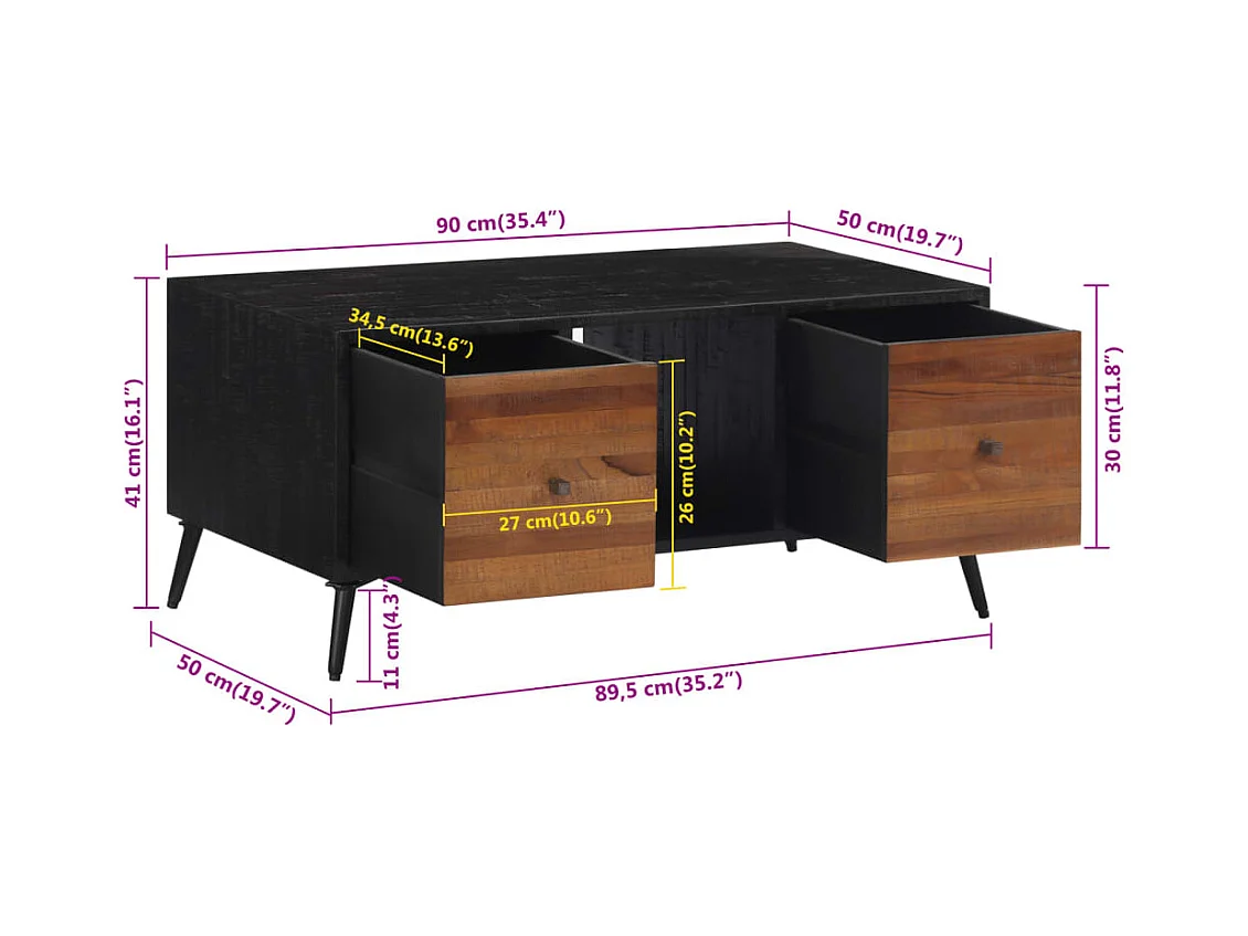 Table basse salon-Table d'appoint 90x50x41 cm teck de récupération massif SHL16234