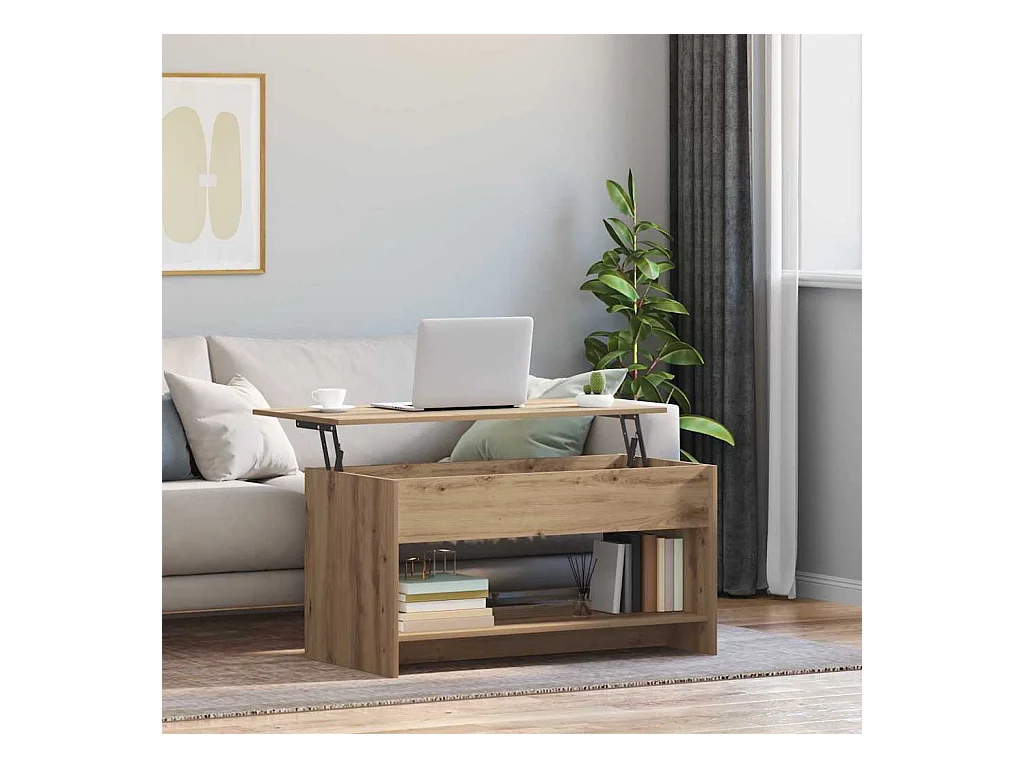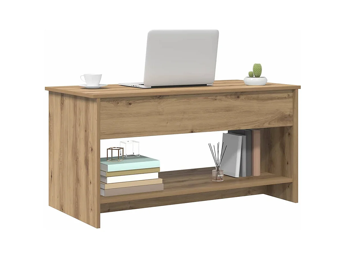 Table basse chêne artisanal 102x50x35 cm bois d'ingénierie