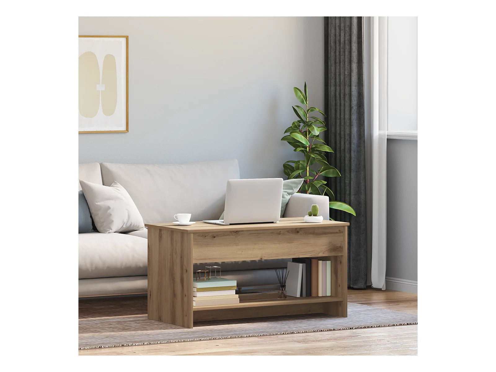 Table basse salon-Table d'appoint avec étagère avec stockage chêne artisanal 102x50x52.5 cm SHL30215