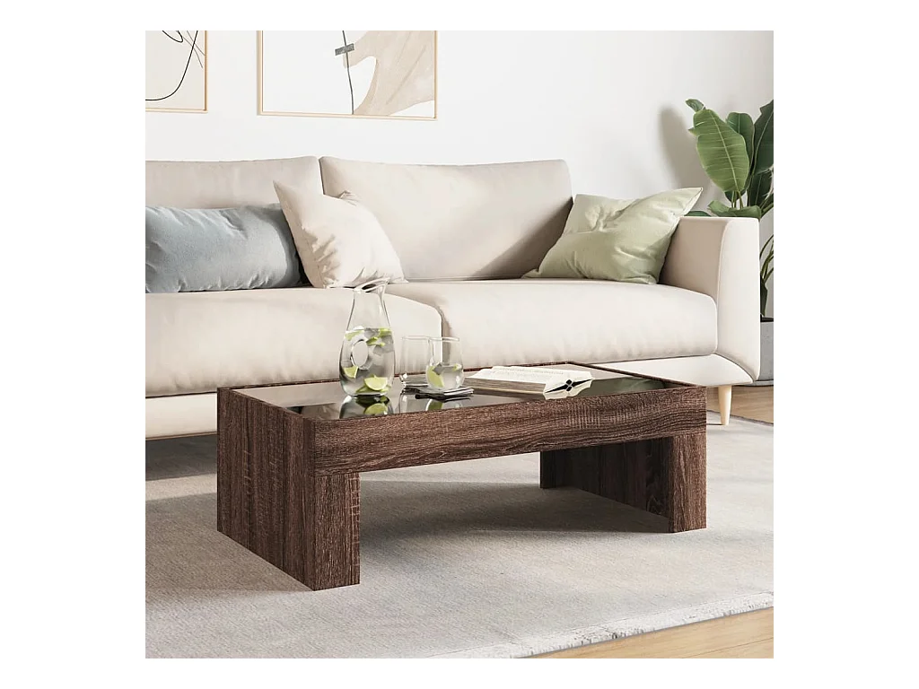 Table basse salon-Table d'appoint avec LED chêne marron 90x50x30 cm bois d'ingénierie SHL48482