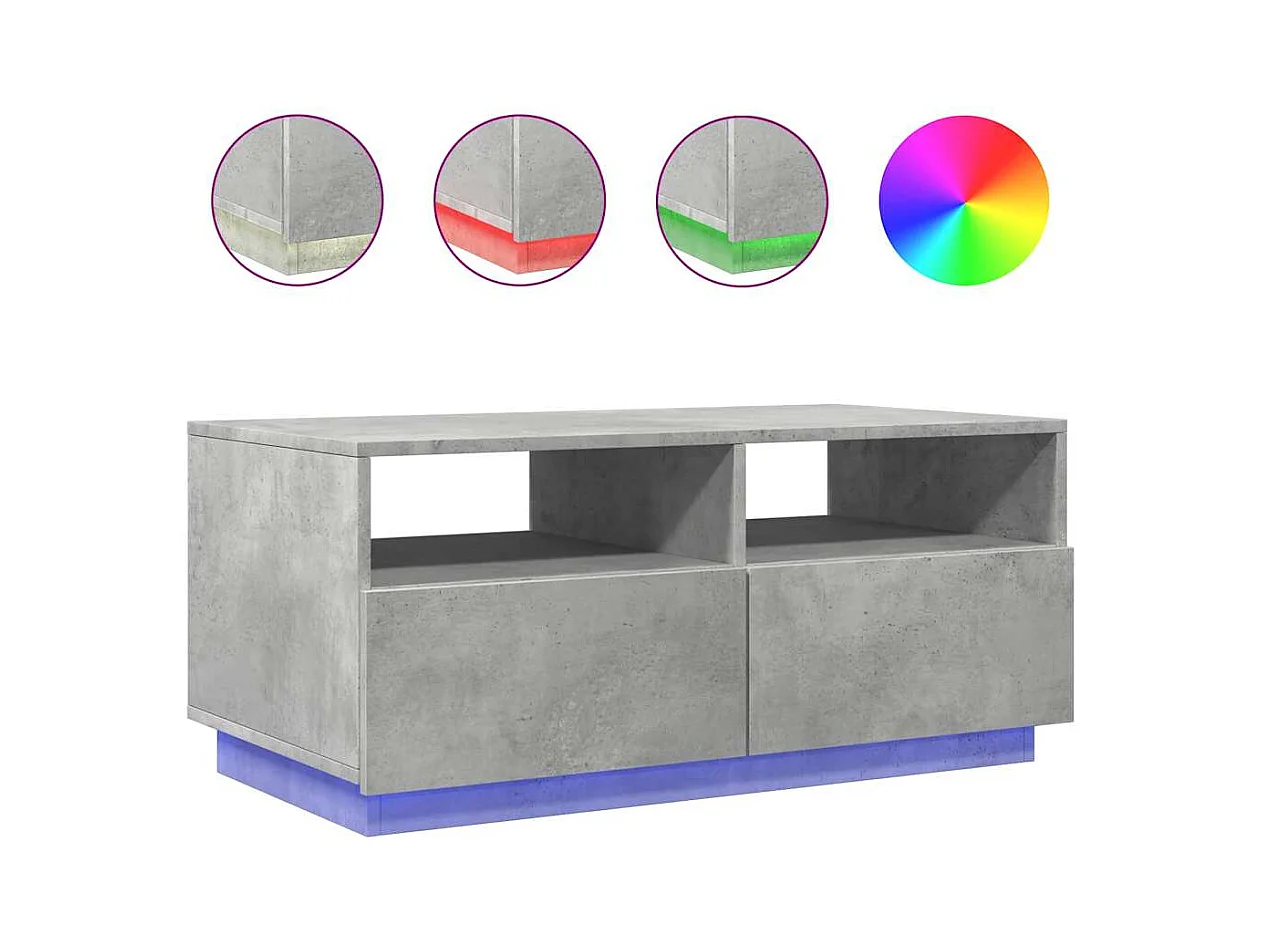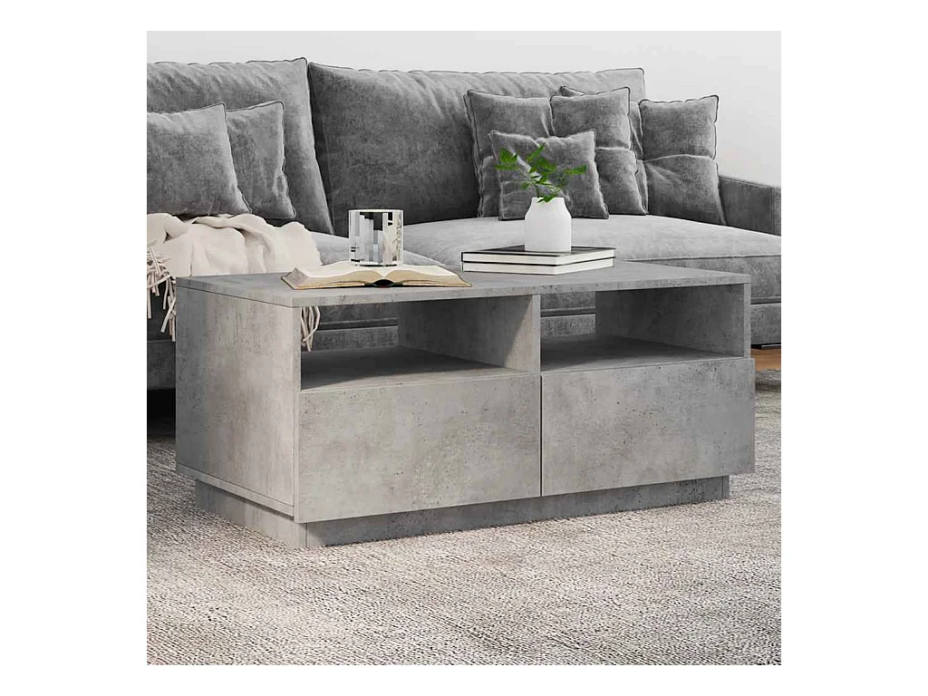 Table basse salon-Table d'appoint avec lumières LED gris béton 90x49x40 cm SHL31001