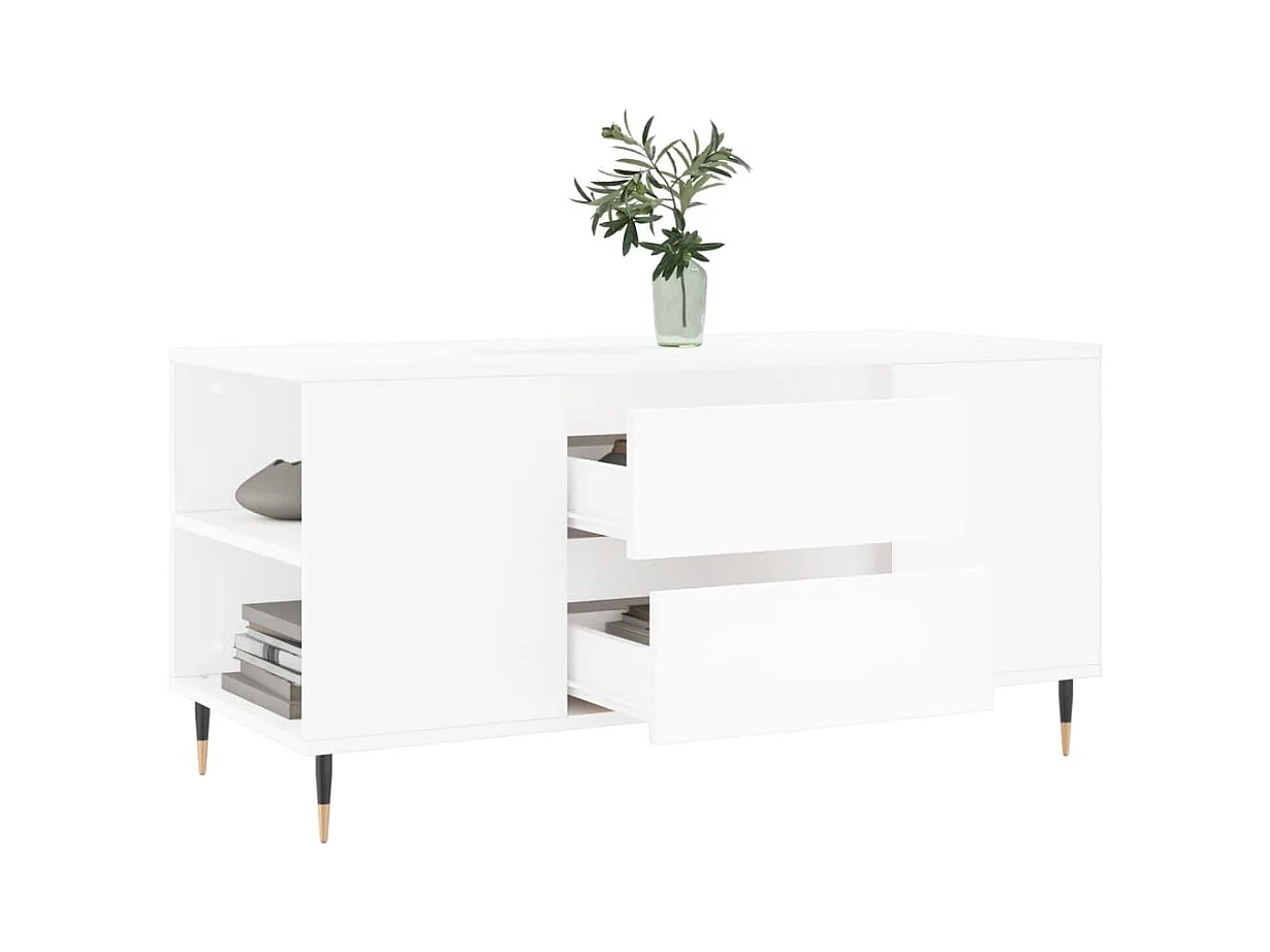 Table basse salon-Table d'appoint blanc brillant 102x55,5x40 cm bois d'ingénierie SHL72845