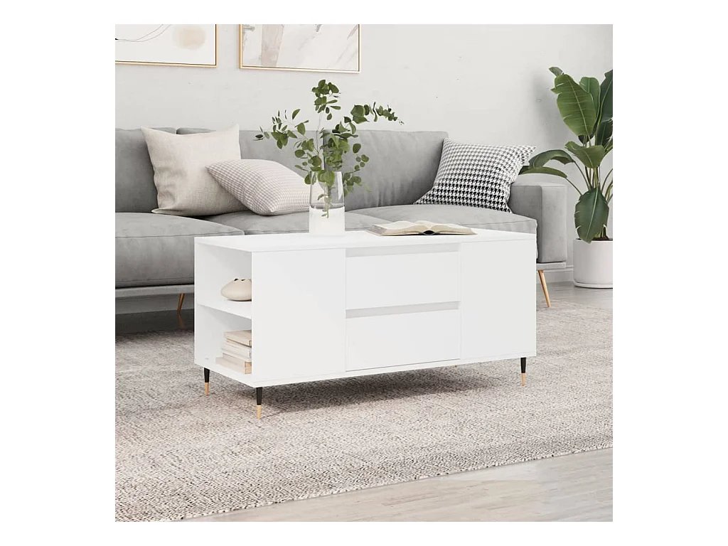 Table basse salon-Table d'appoint blanc 102x50x40 cm bois d'ingénierie SHL42660