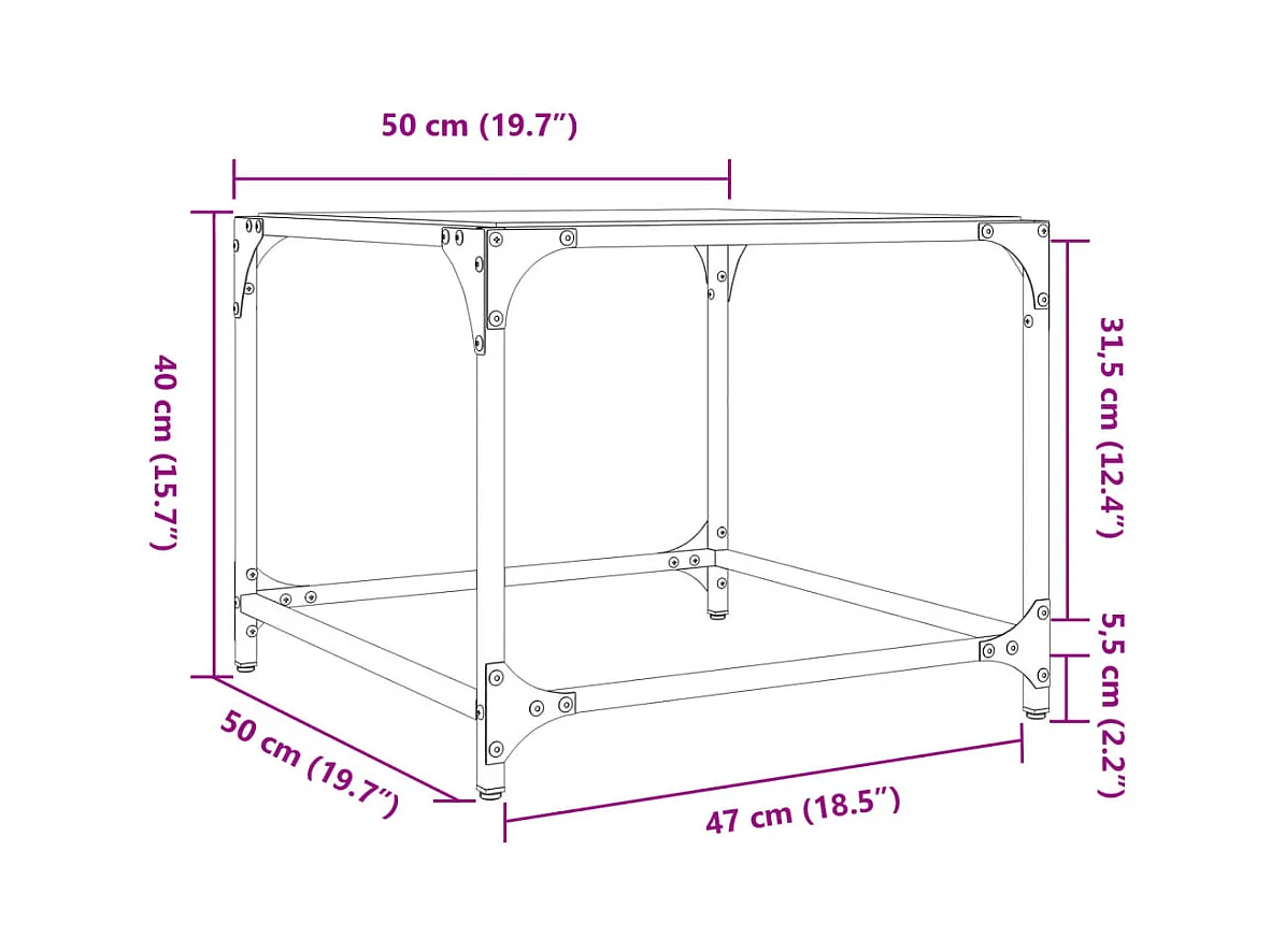 Table basse salon-Table d'appoint-dessus en verre transparent 50x50x40 cm acier SHL34784