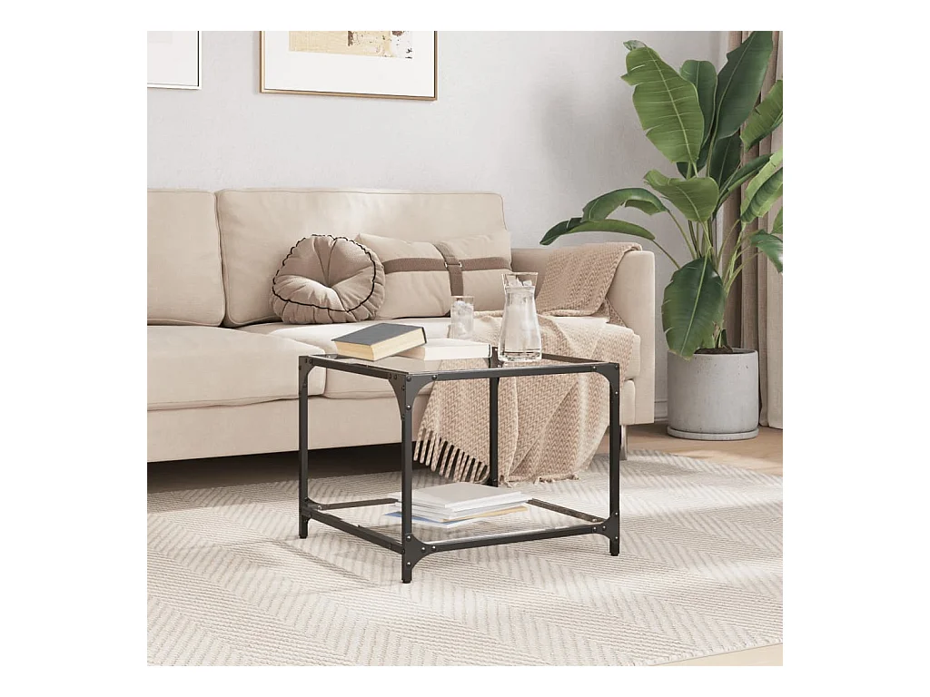 Table basse salon-Table d'appoint-dessus en verre transparent 50x50x40 cm acier SHL34784