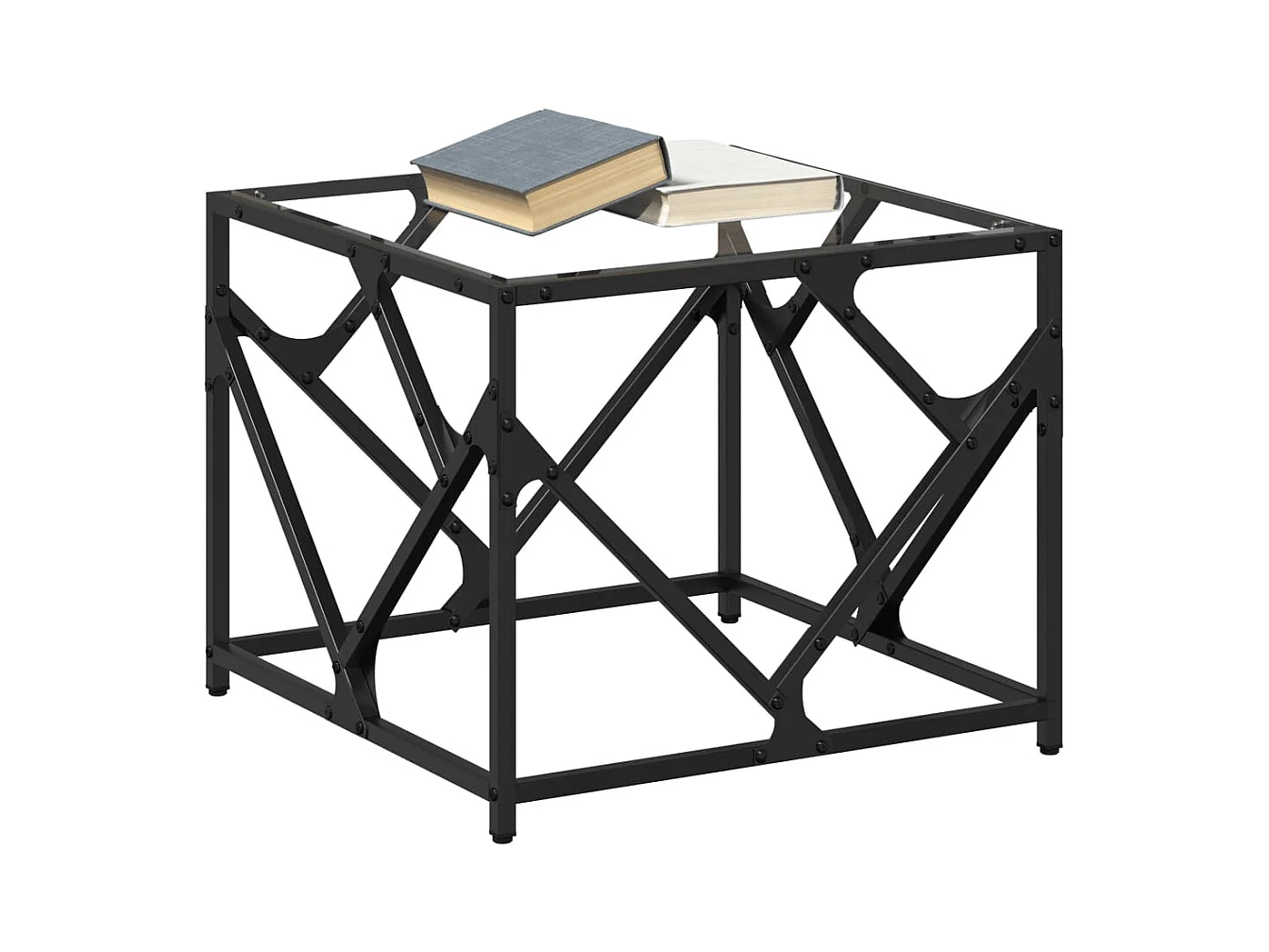Table basse salon-Table d'appoint-dessus en verre transparent 50x50x40 cm acier SHL62767