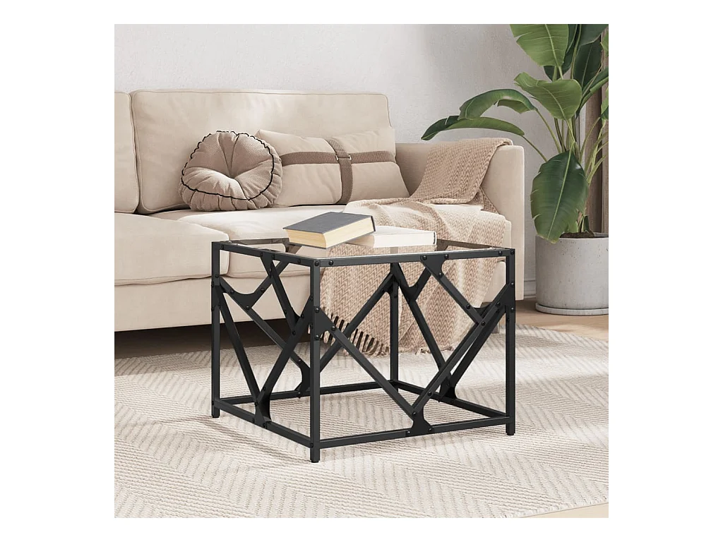 Table basse salon-Table d'appoint-dessus en verre transparent 50x50x45 cm acier SHL71338